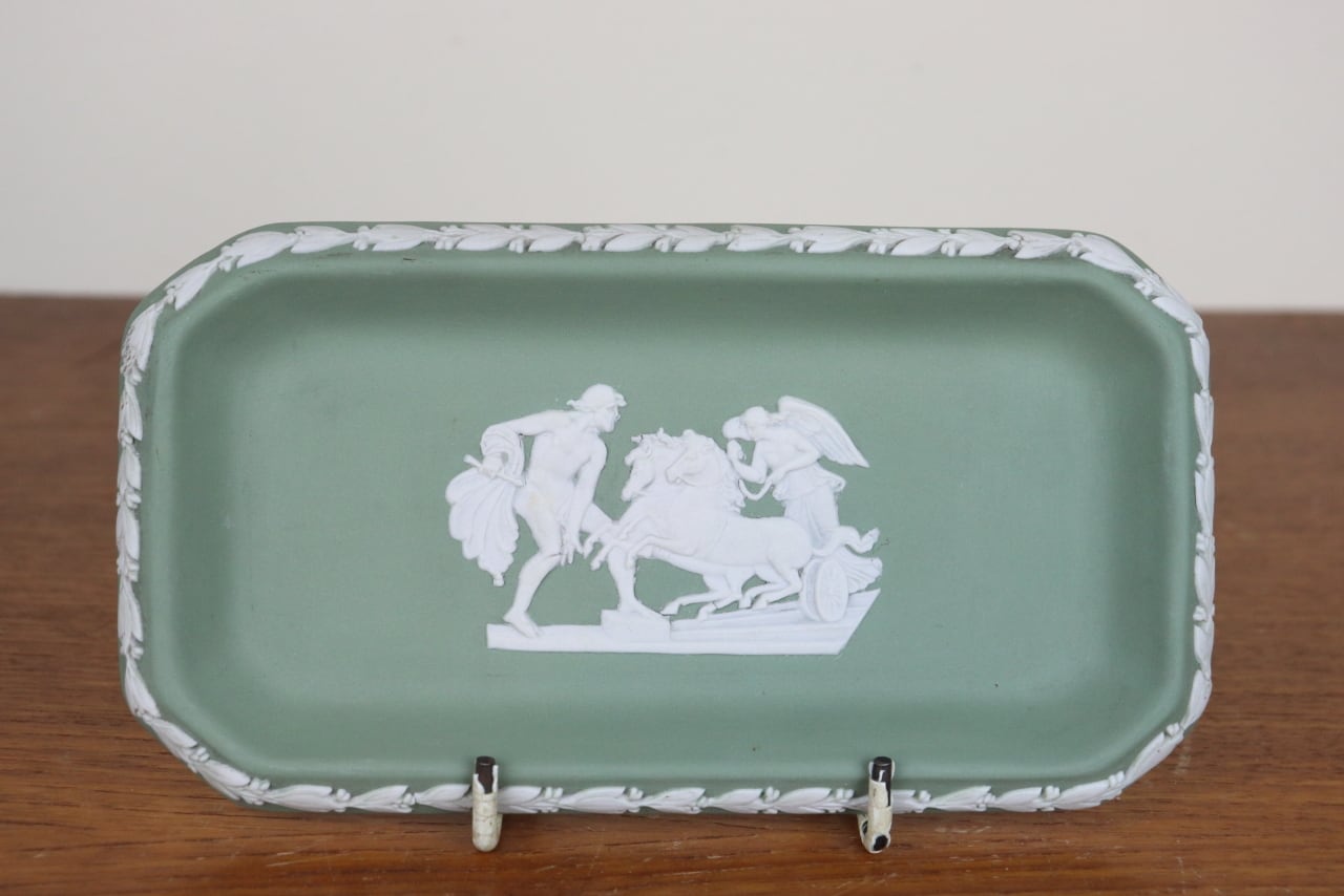 ウェッジウッド ジャスパー セージグリーン トレイ 長方形 ピンディッシュ プレート WEDGWOOD イギリス ヴィンテージ え204-4