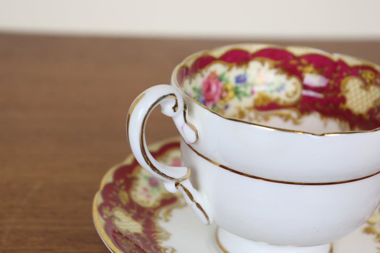 パラゴン ポンパドール デミタス デュオ カップ&ソーサー レア PARAGON 花柄 ワインレッド イギリス ヴィンテージ 食器 L250-2