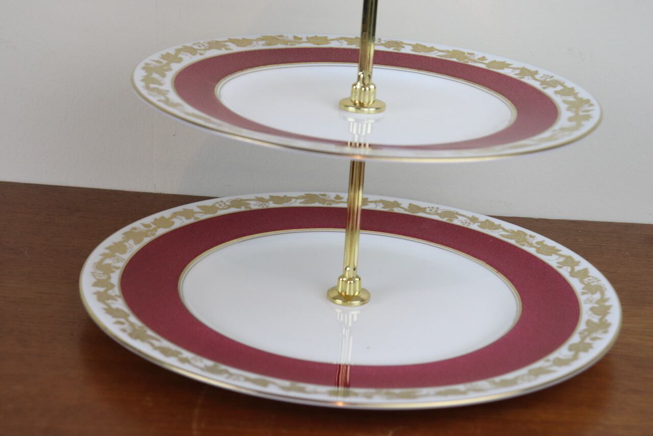 ウェッジウッド ホワイトホール パウダールビー 3段ケーキスタンド アフタヌーンティースタンド 組立式 イギリス ヴィンテージ 食器 G152G137G138