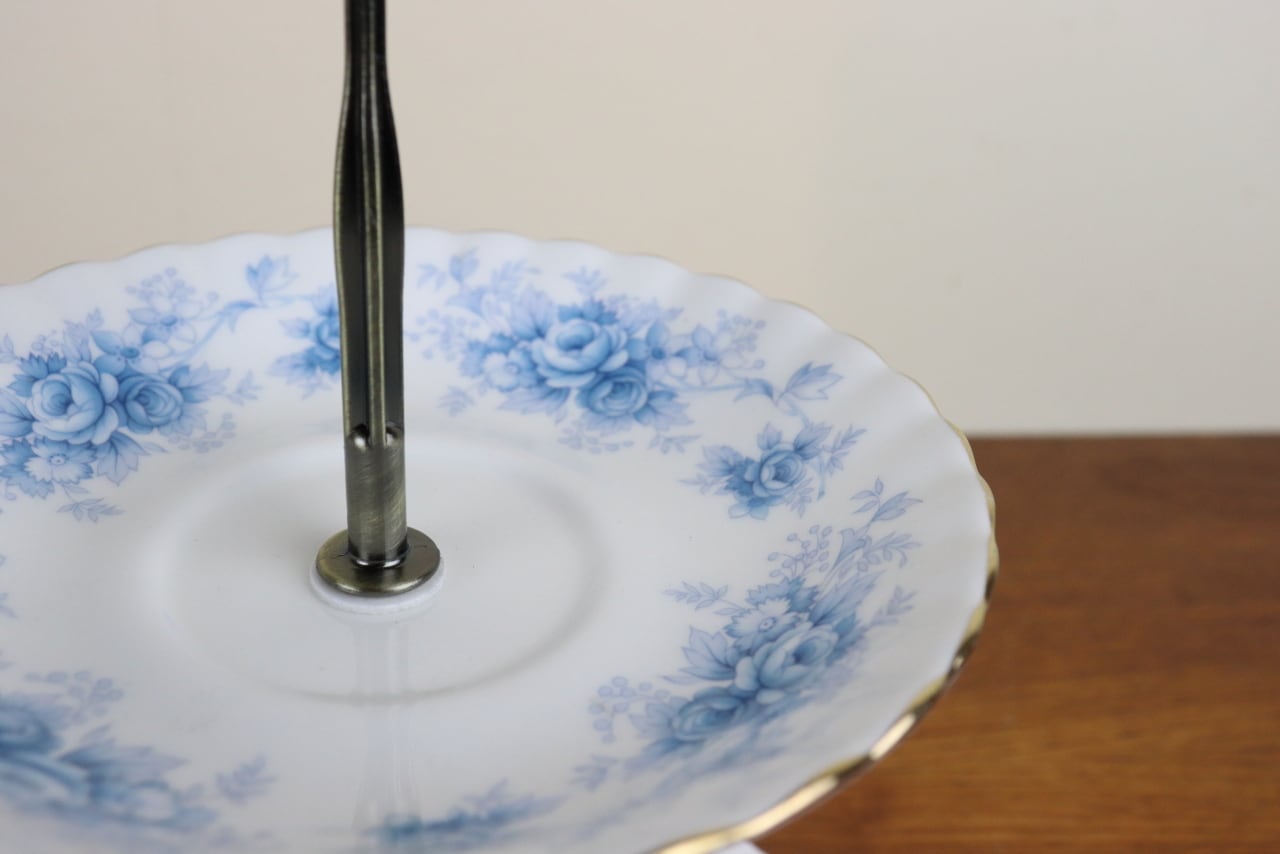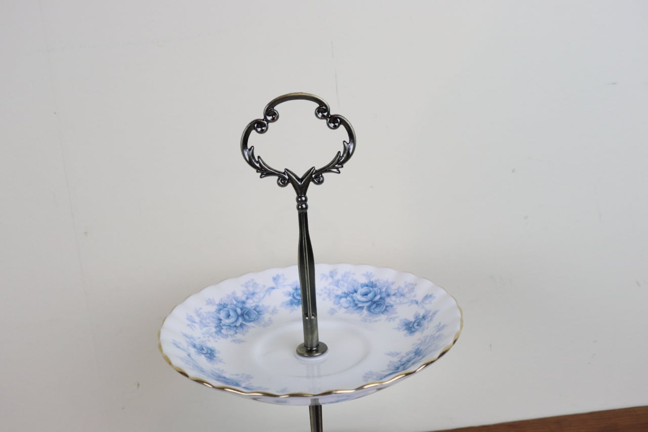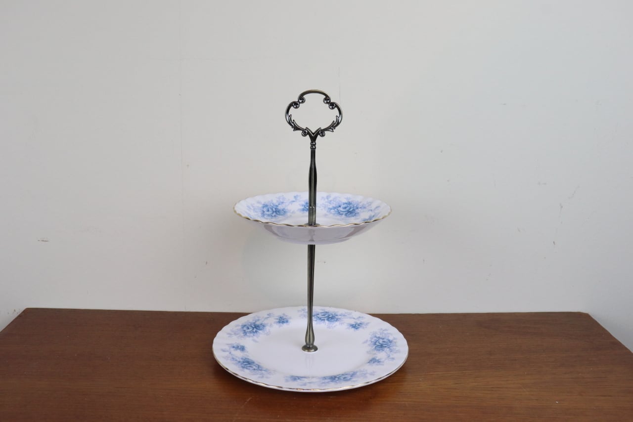 ロイヤルアルバート ウィンザーローズ 2段ケーキスタンド アフタヌーンティースタンド 組立式 青 バラ ヴィンテージ イギリス L42