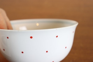 白磁にぷくりと膨れたドット柄と水色のラインの組み合わせが