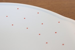 白磁にぷくりと膨れたドット柄と水色のラインの組み合わせが