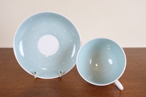 スージークーパー レイズドスポット カップ&ソーサー ティーカップ デュオ ドット 水玉 水色 Susie Cooper イギリス ヴィンテージ に1285