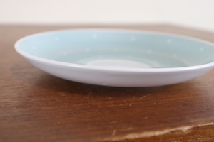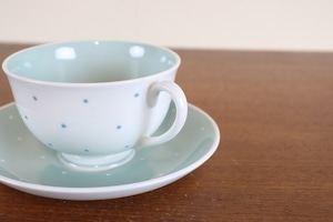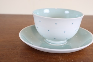 白磁に水色のぷくりと盛り上がったドット柄が大変可愛らしいデザインです。