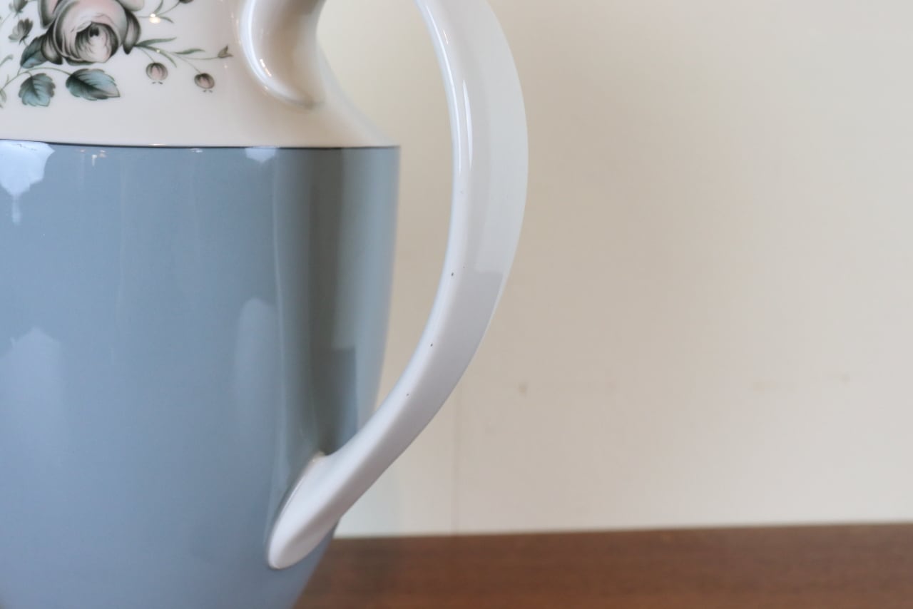 ブルーグレーに上品なバラが描かれた素敵なお品です。