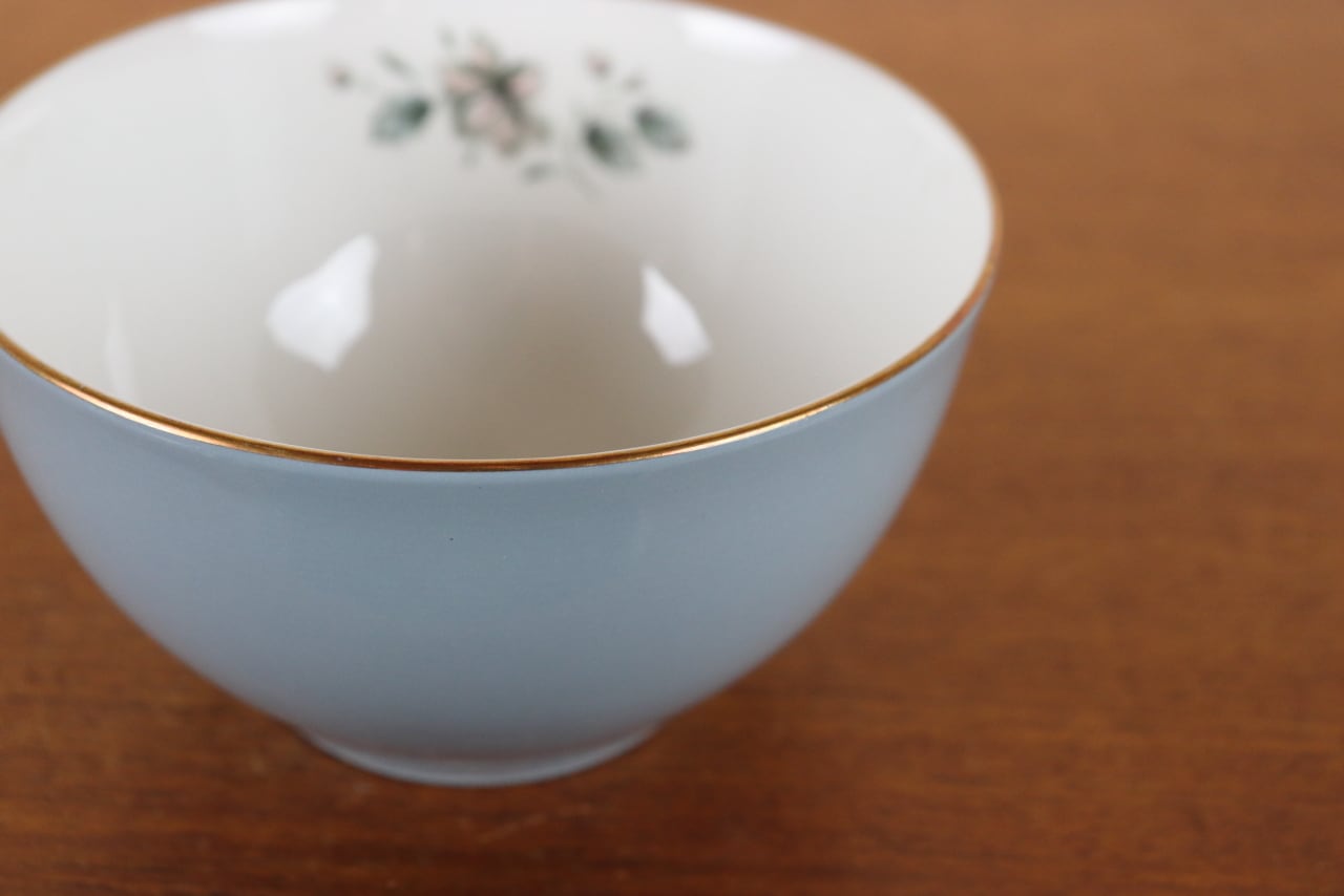 ブルーグレーに上品なバラが描かれた素敵なお品です。