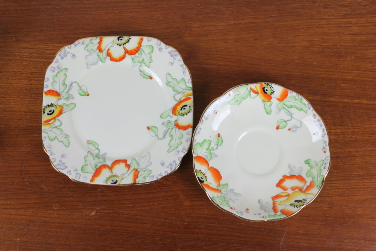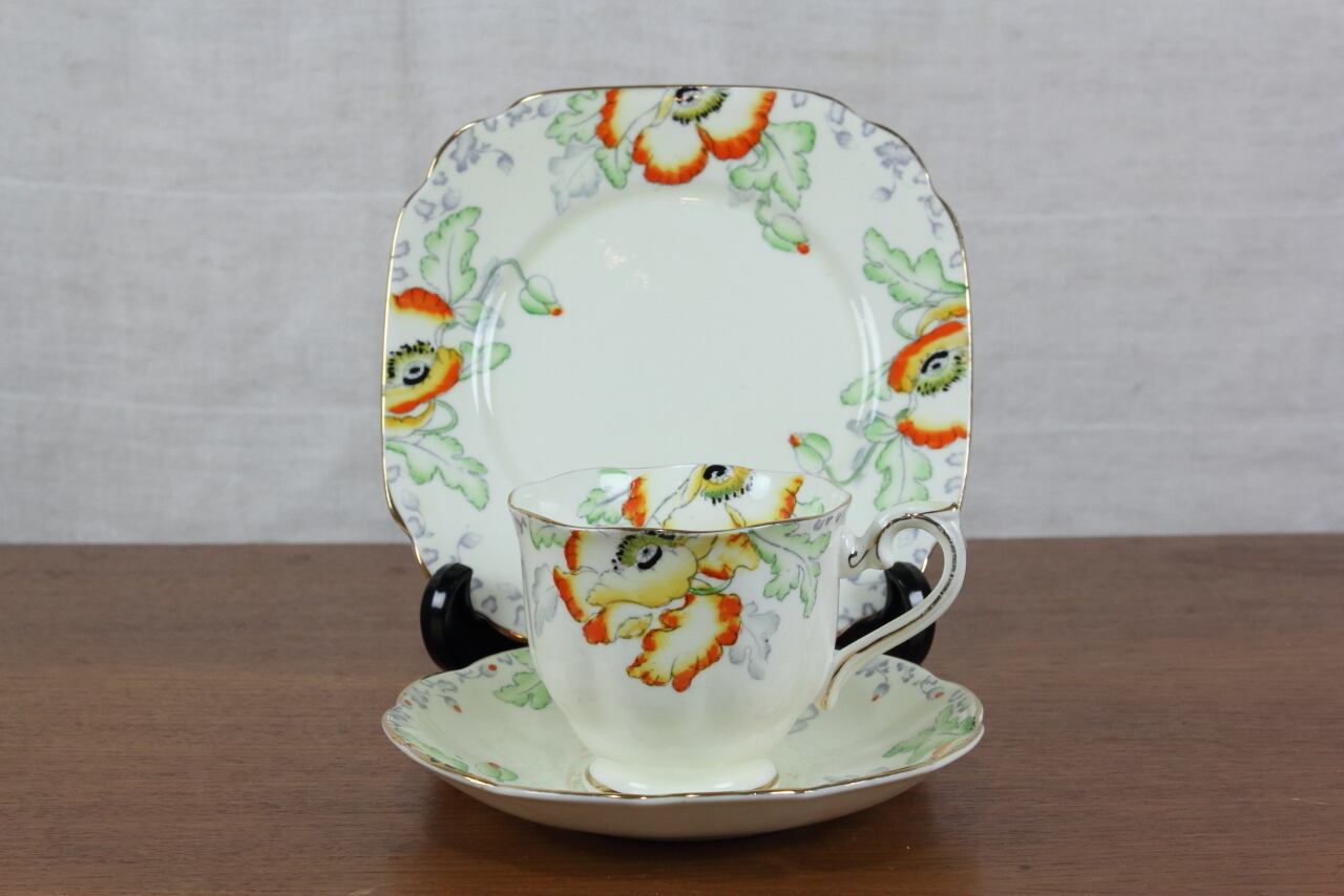 ロイヤルアルバート ポピー トリオ ティーカップ ケーキ皿 イギリス ROYAL ALBERT ヴィンテージ 花柄 プレート