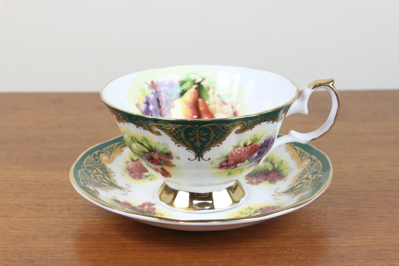 エリザベサン デュオ ティーカップ イギリス Erizabethan フルーツ 緑色 グリーン ヴィンテージ 食器