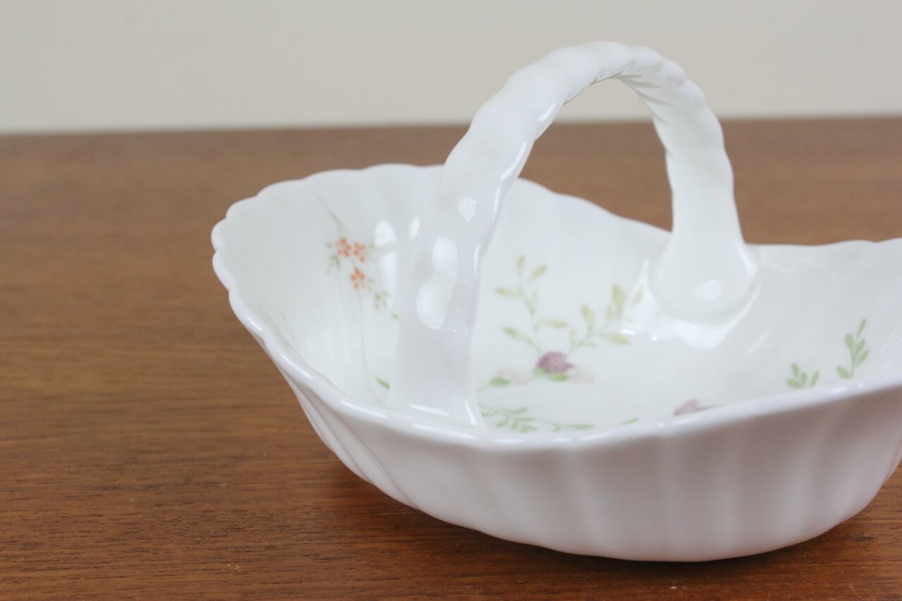 淡いパステルカラーで野花が描かれた、優しい印象のお品です。