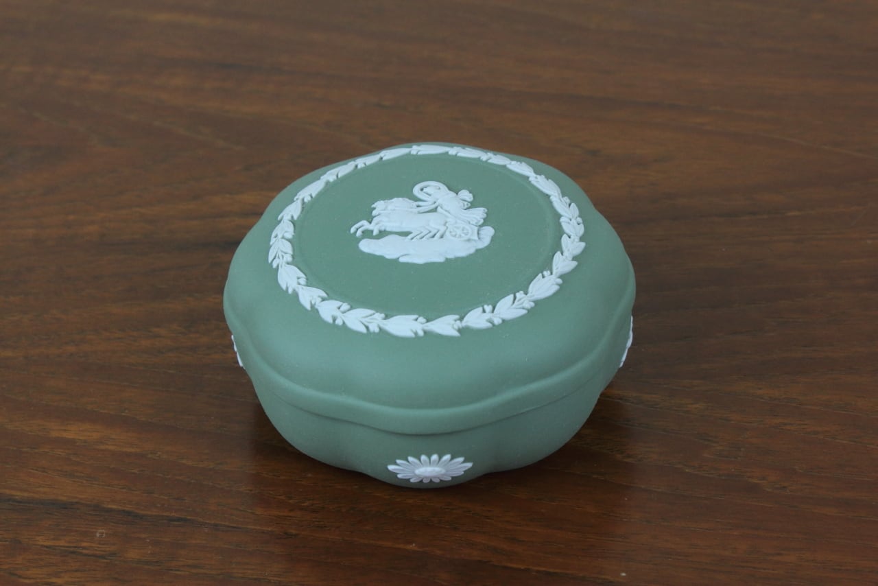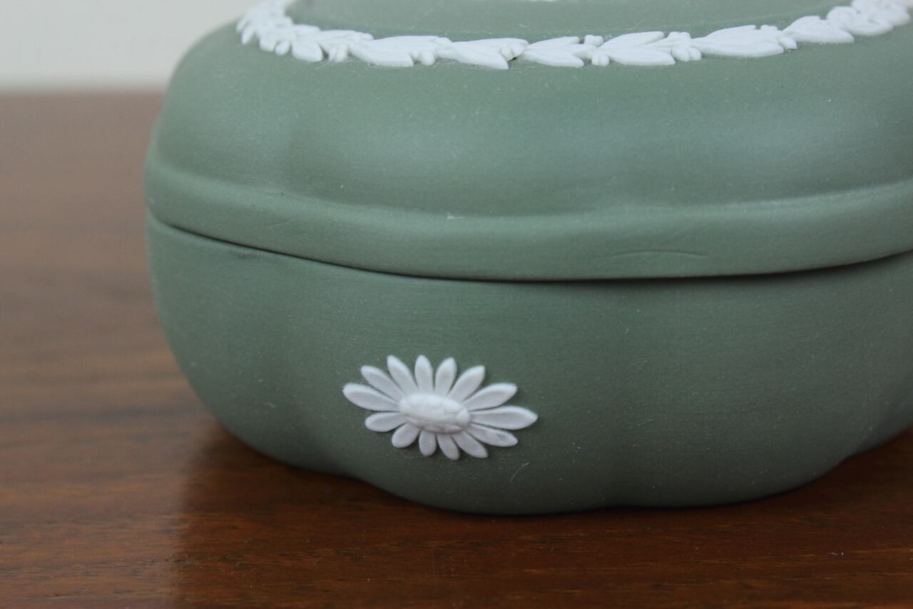 ウェッジウッド ジャスパー 小物入れ。 花型 ボックス セージグリーン WEDGWOOD イギリス ①