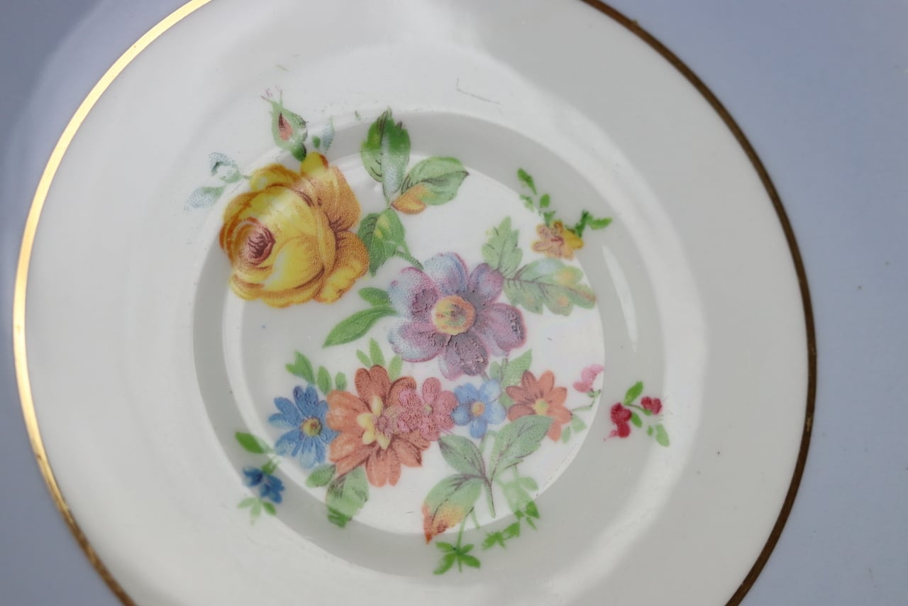 トーマスグード トリオ ティーカップ ケーキ皿 プレート ブルー 花柄 T.Goode ヴィンテージ イギリス