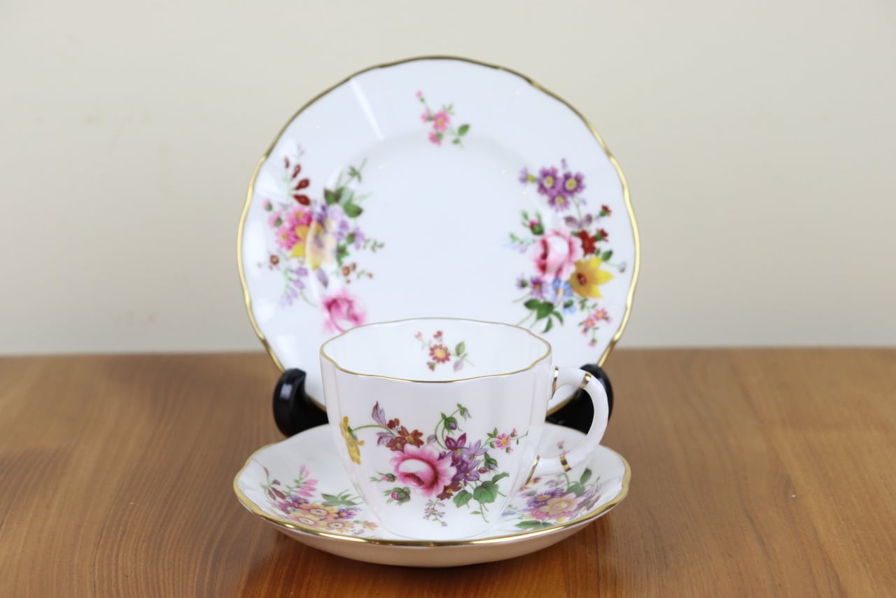 カップ&ソーサー、ケーキ皿の3点セットです。