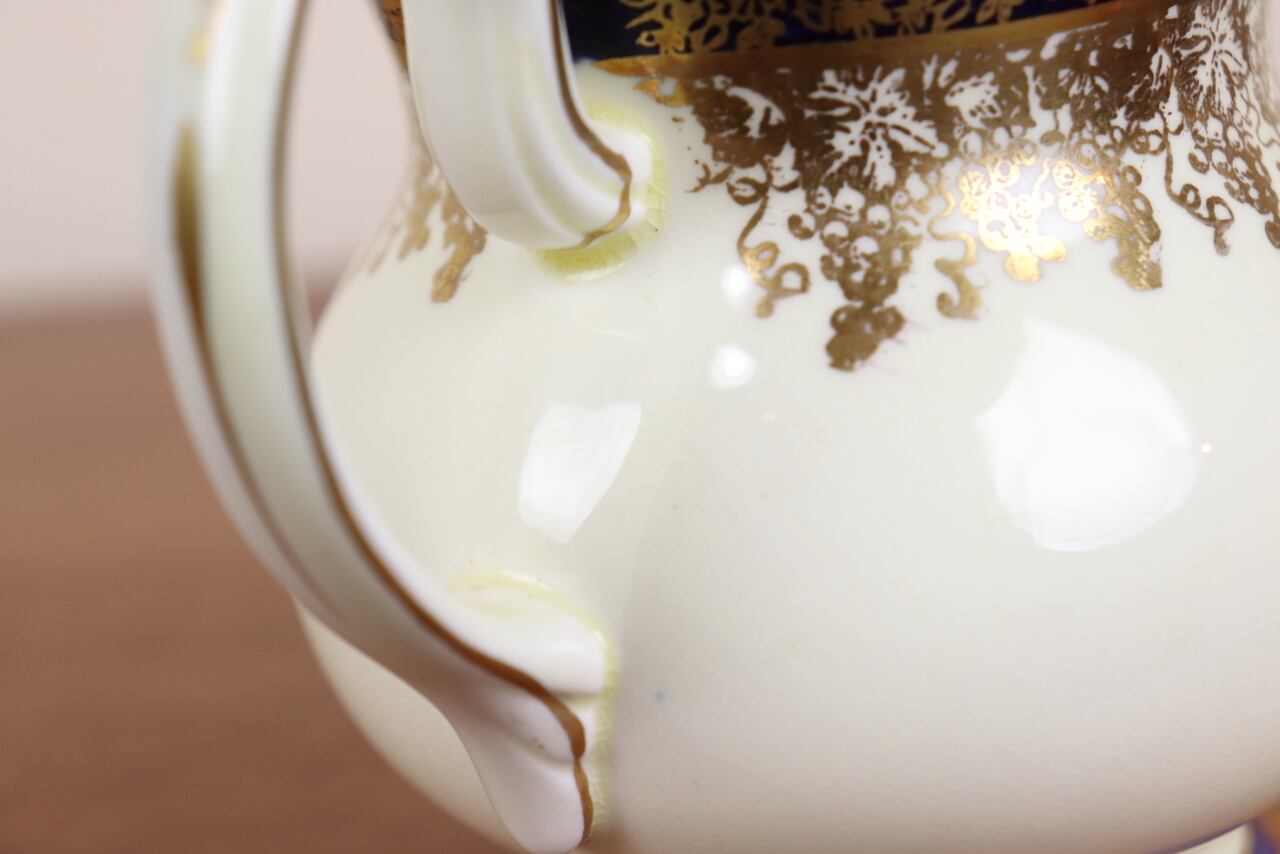 藍色に葡萄柄のような金彩が施された美しいお品です。