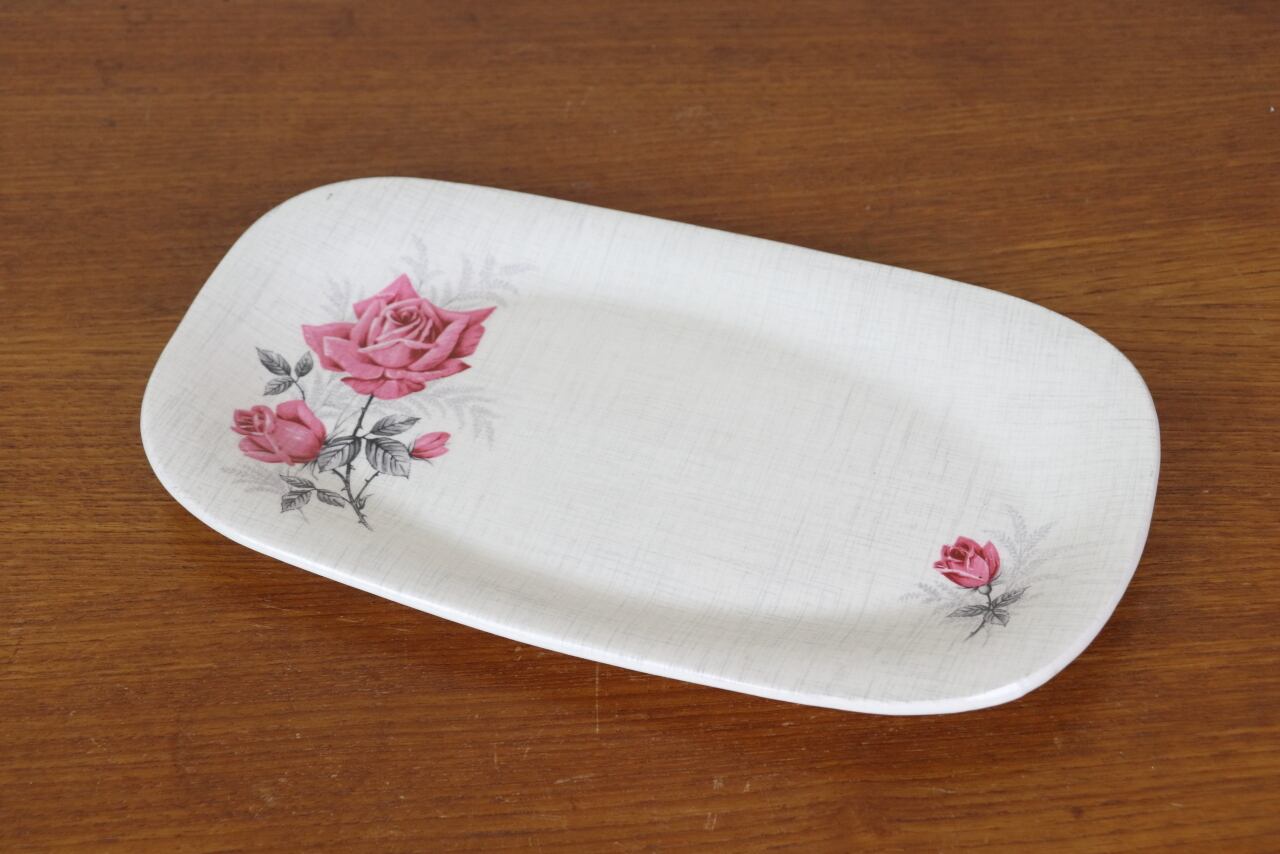 地模様とバラが可愛らしいレトロな雰囲気のプレートです。