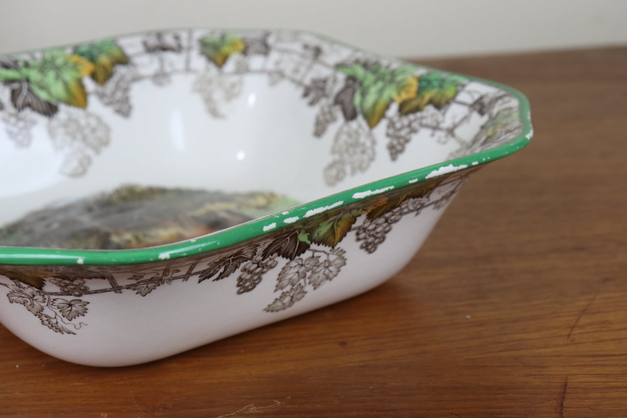 コープランド・スポード バイロン サラダボウル スクエアボウル 深皿 イギリス SPODE アンティーク ハンドペイント 陶磁器 つ305