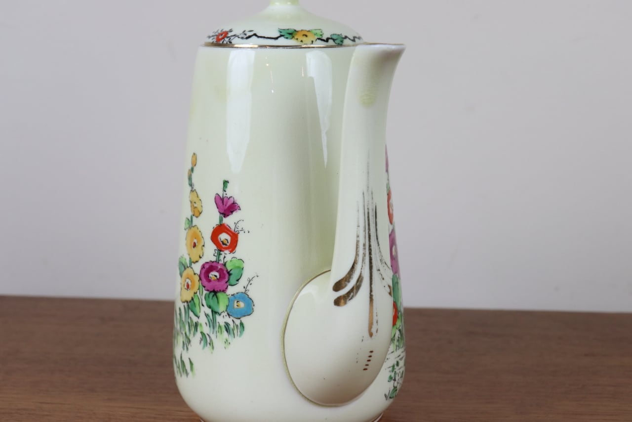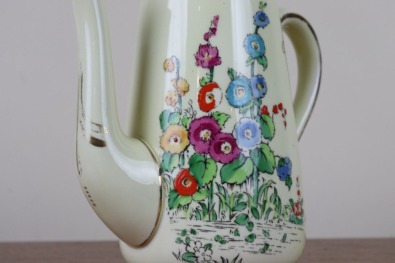 クラウンスタッフォードシャー ポット 花柄 アンティーク ハンドペイント CROWN STAFFORDSHIRE ヴィンテージ イギリス つ439