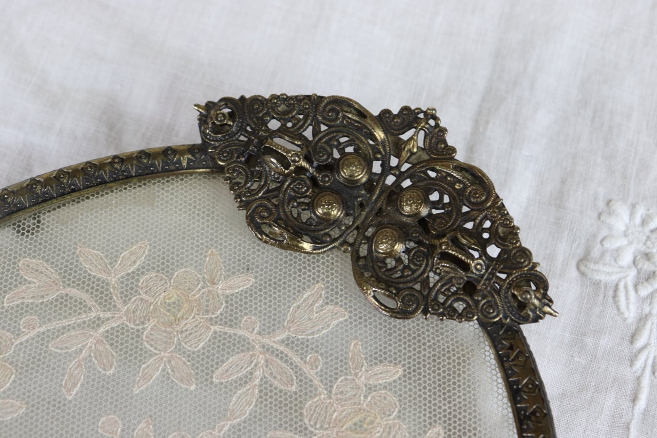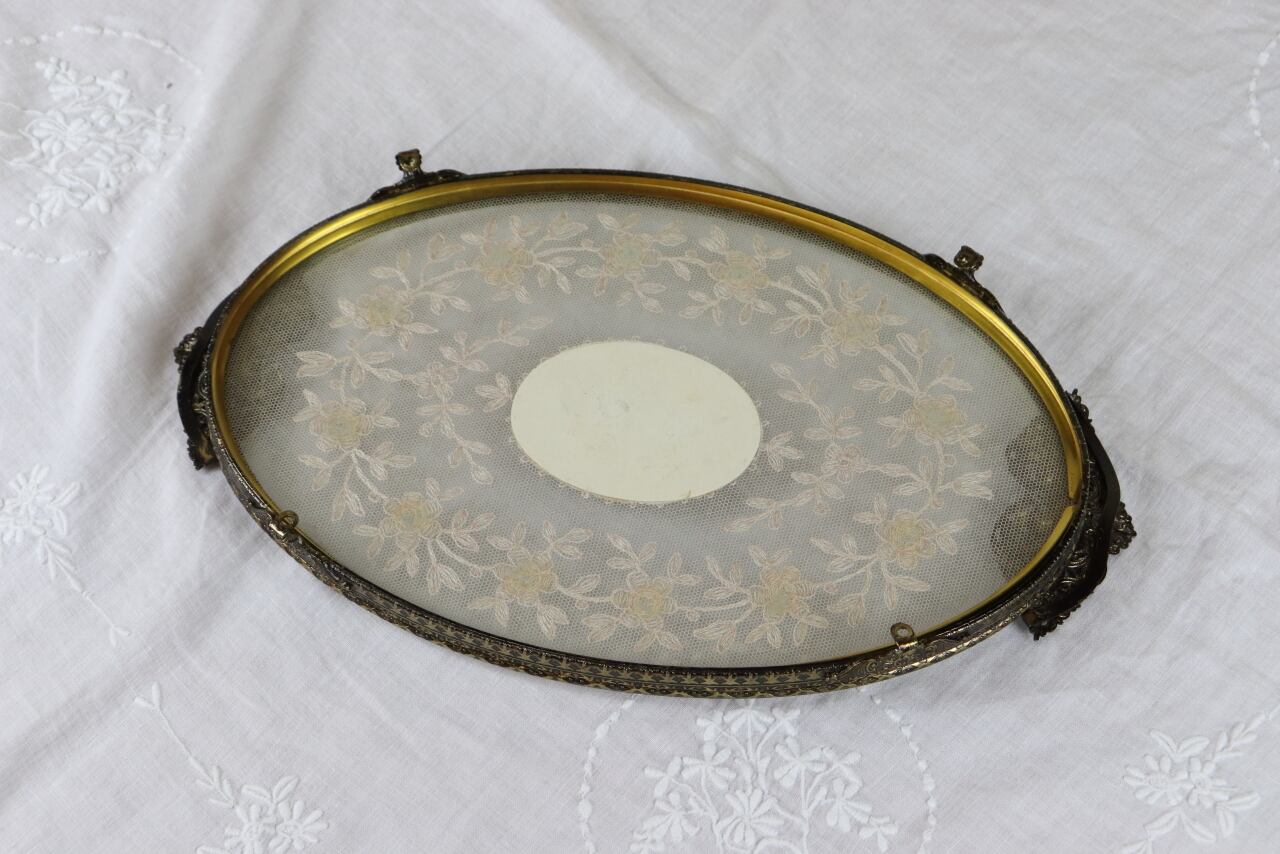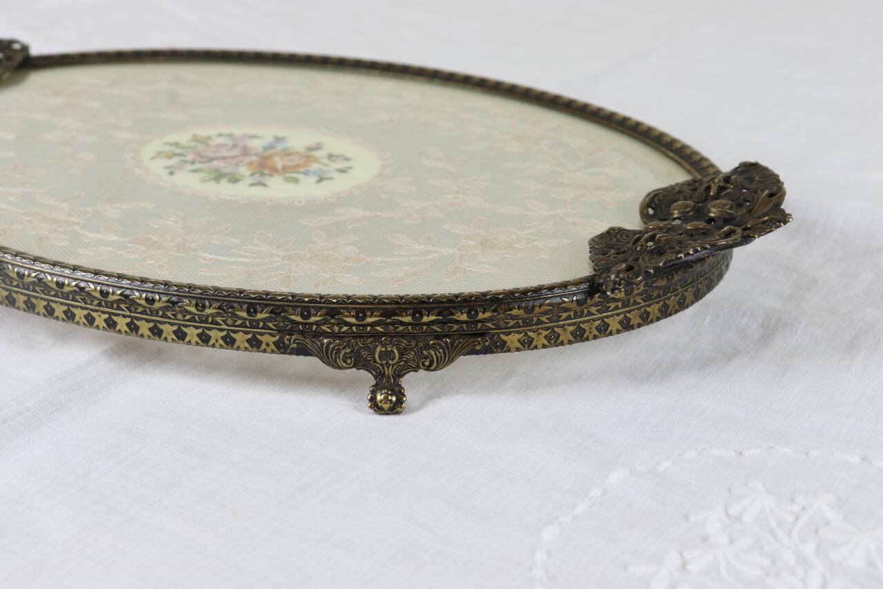 プチポワン ドレッシングトレイ イギリス アンティーク 刺繍 ガラス オーバル ヴィンテージ 雑貨 49-5