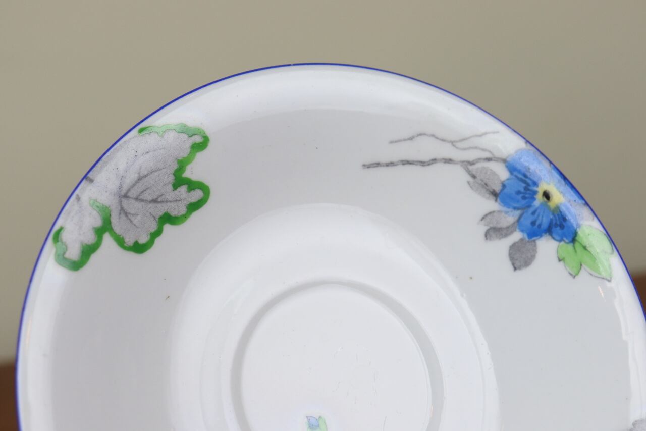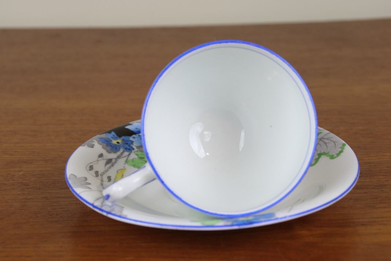 イギリス サザーランド デュオ カップ&ソーサー デミタス ハンドペイント 青ブルー 花柄 Sutherland ヴィンテージ 食器 つ351