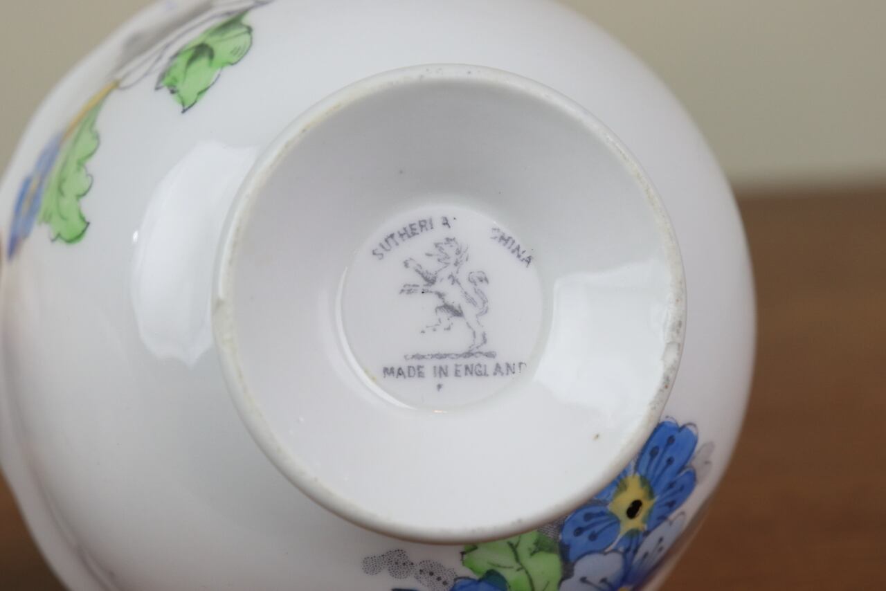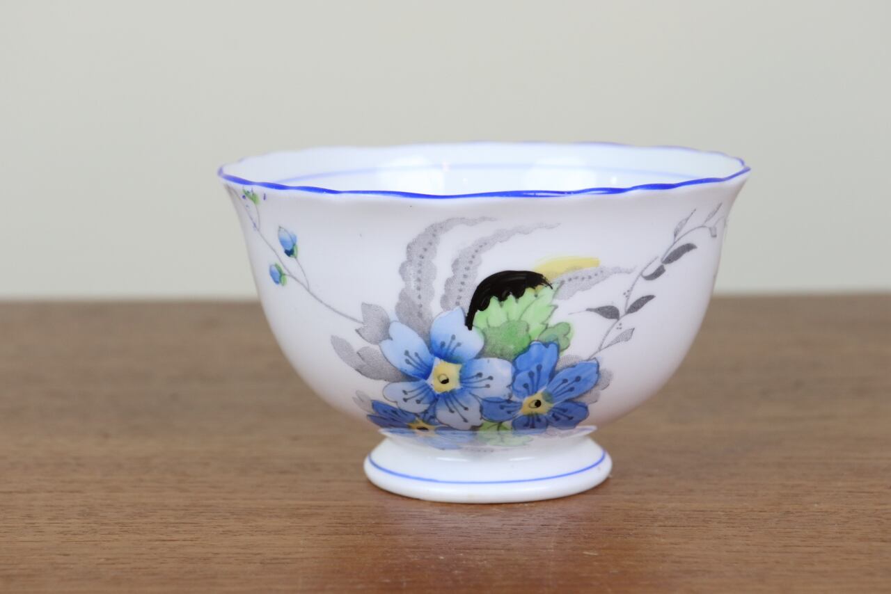 イギリス サザーランド シュガーボウル ハンドペイント 青ブルー 花柄 Sutherland ヴィンテージ 食器 つ351