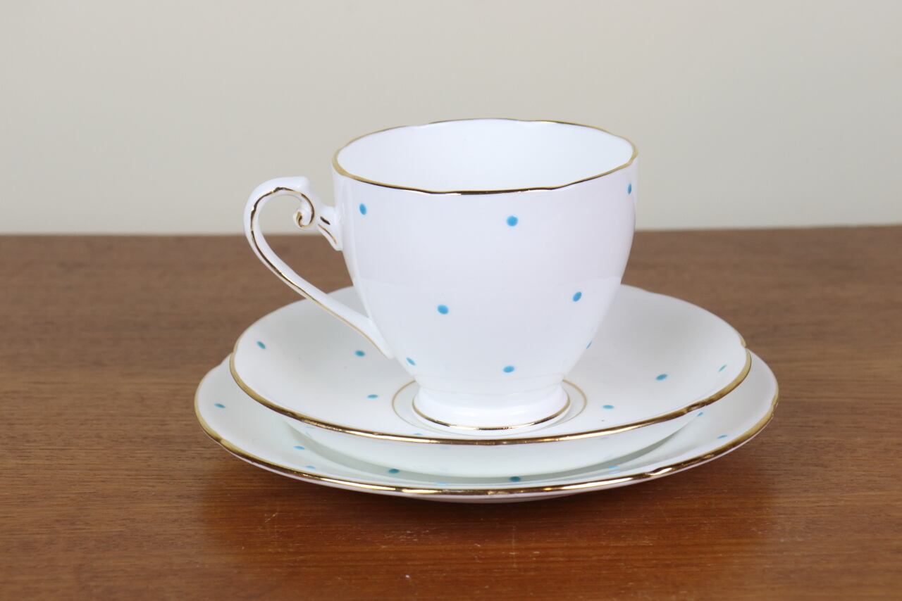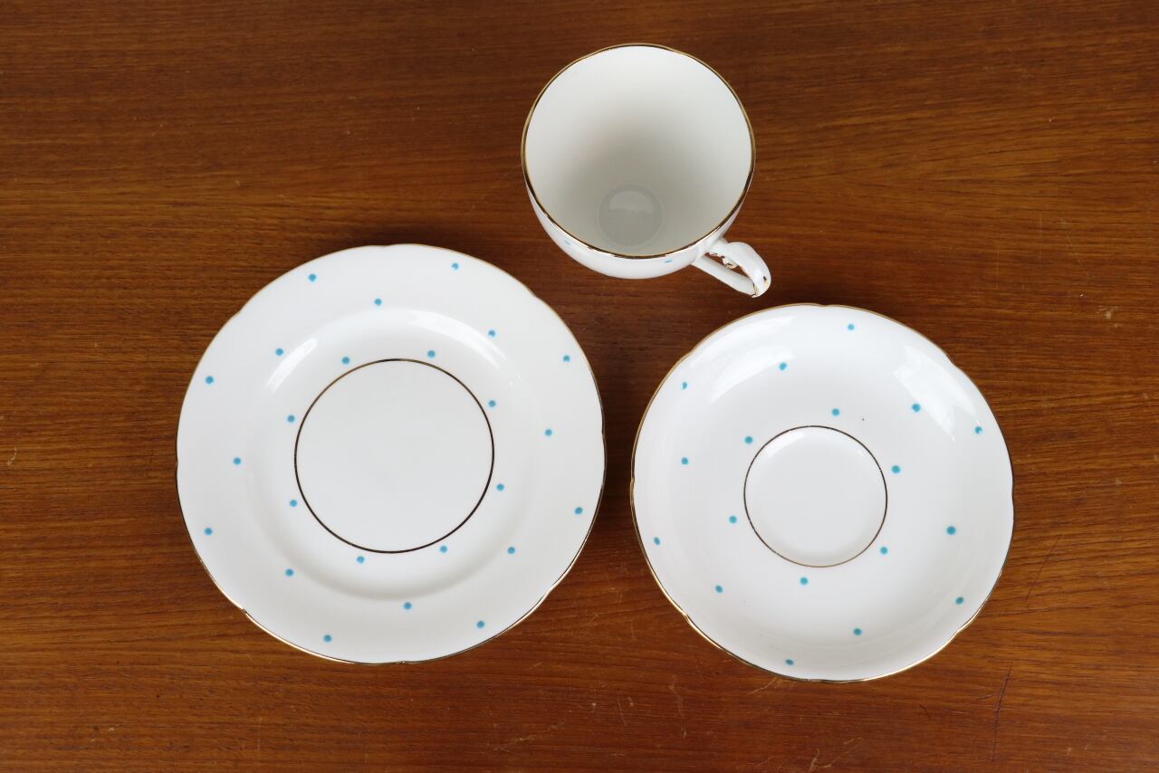 ロイヤルグラフトン トリオ カップ ケーキ皿 デザートプレート 水玉 水色 ROYAL GRAFTON イギリス ヴィンテージ つ379