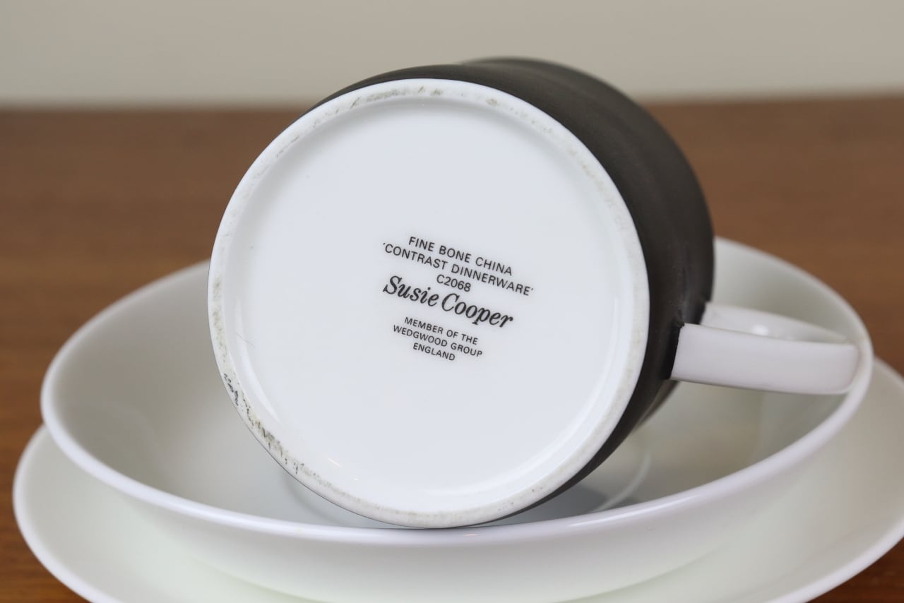 スージークーパー コントラスト トリオ コーヒーカップ&ソーサー プレート ケーキ皿 黒 マット Susie Cooper CONTRAST ヴィンテージ 陶磁器 イギリス つ325