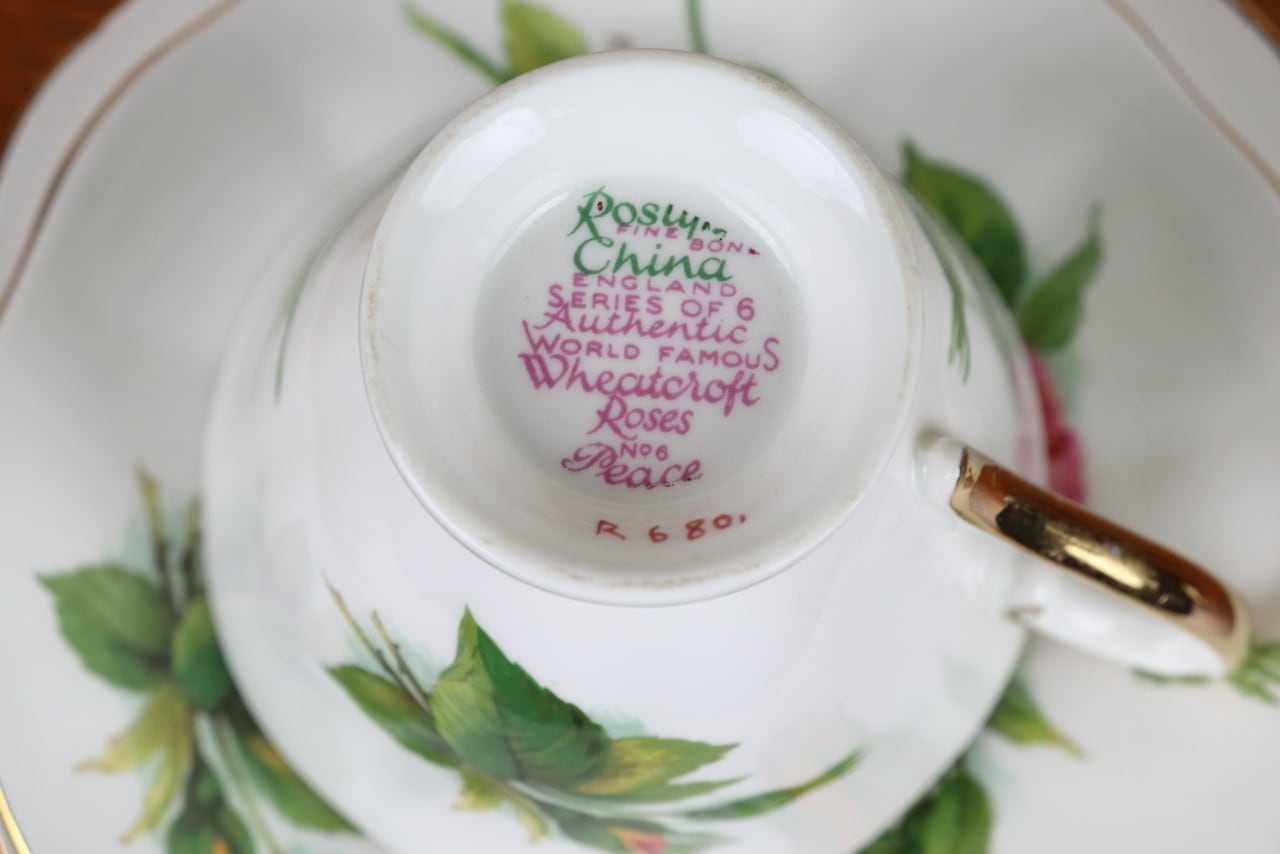 ロズリン ロイヤルスタンダード SIX WORLD FAMOUS ROSES トリオ ティーカップ プレート ケーキ皿 ピース ピンク ローズ 薔薇ヴィンテージ イギリス Roslyn つ164