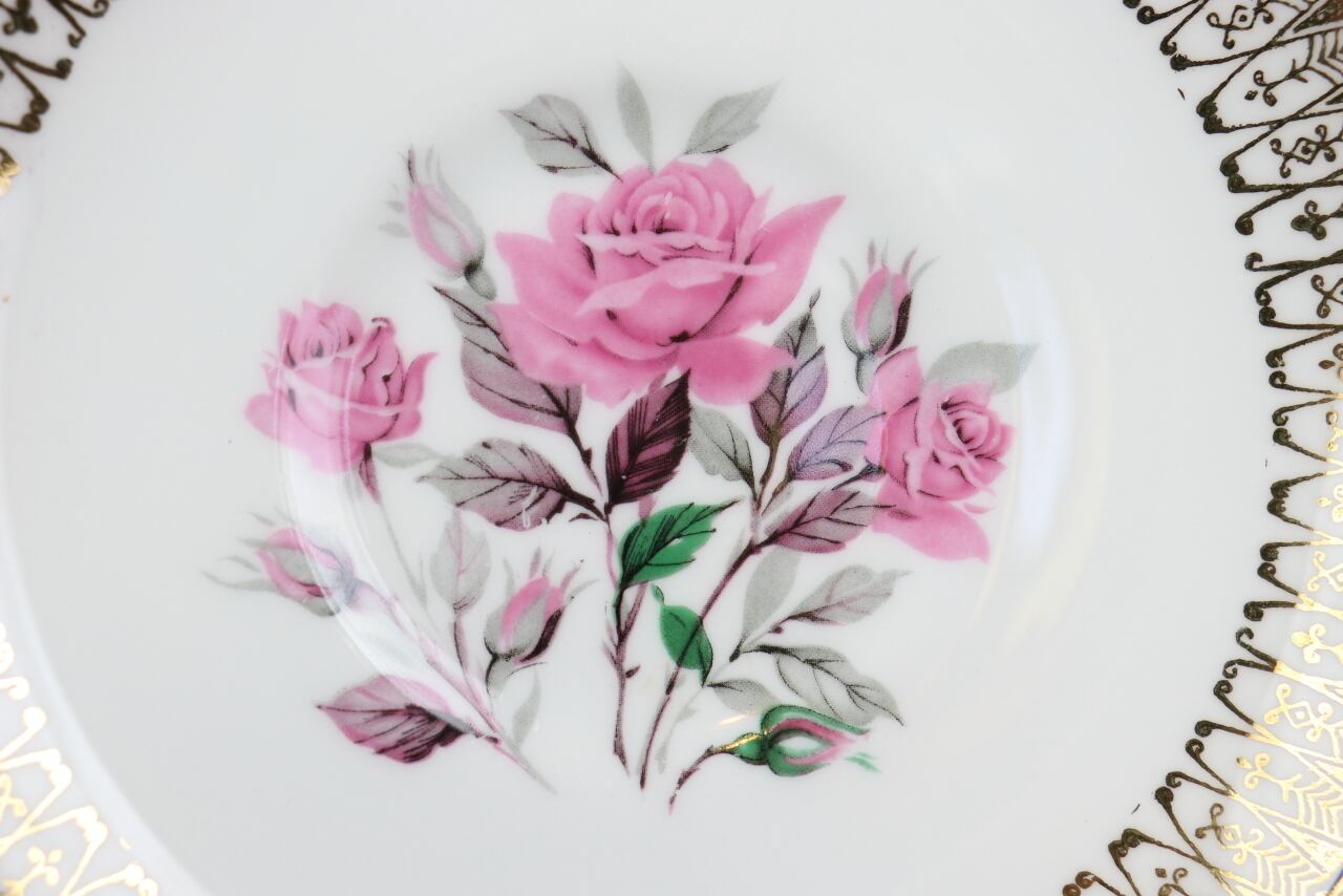 ピンクの薔薇が儚げに描かれた可憐なお品です。