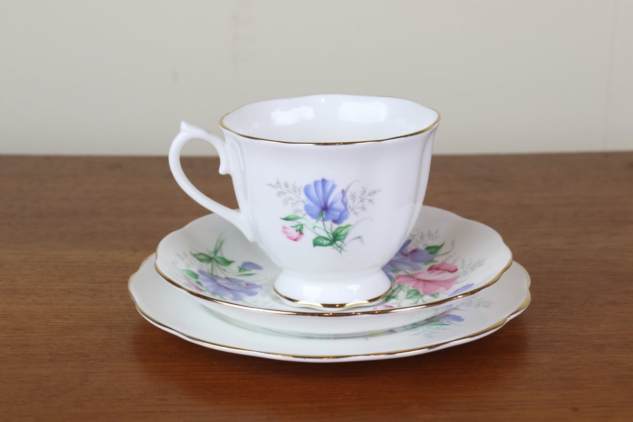 ロイヤルアルバート スイートピー トリオ カップ&ソーサー プレート ケーキ皿 イギリス ROYAL ALBERT ヴィンテージ つ290