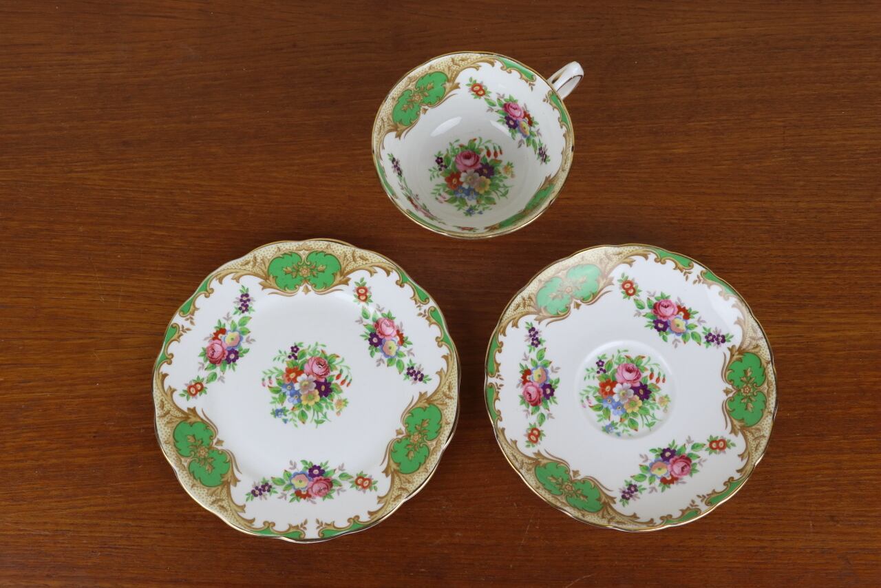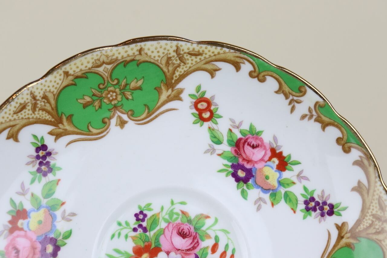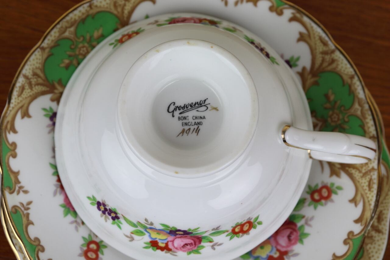 イギリス グロブナー トリオ カップ プレート ケーキ皿 グリーン緑 GROSVENOR ヴィンテージ つ299