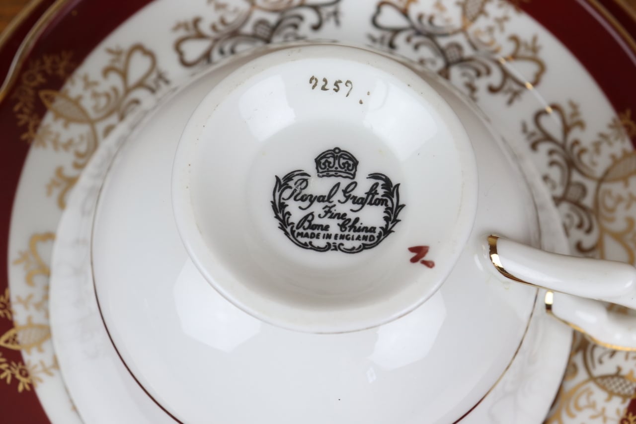ロイヤルグラフトン トリオ ティーカップ ケーキ皿 赤 花柄 イギリス ヴィンテージ Royal Grafton アンティーク 食器 つ13