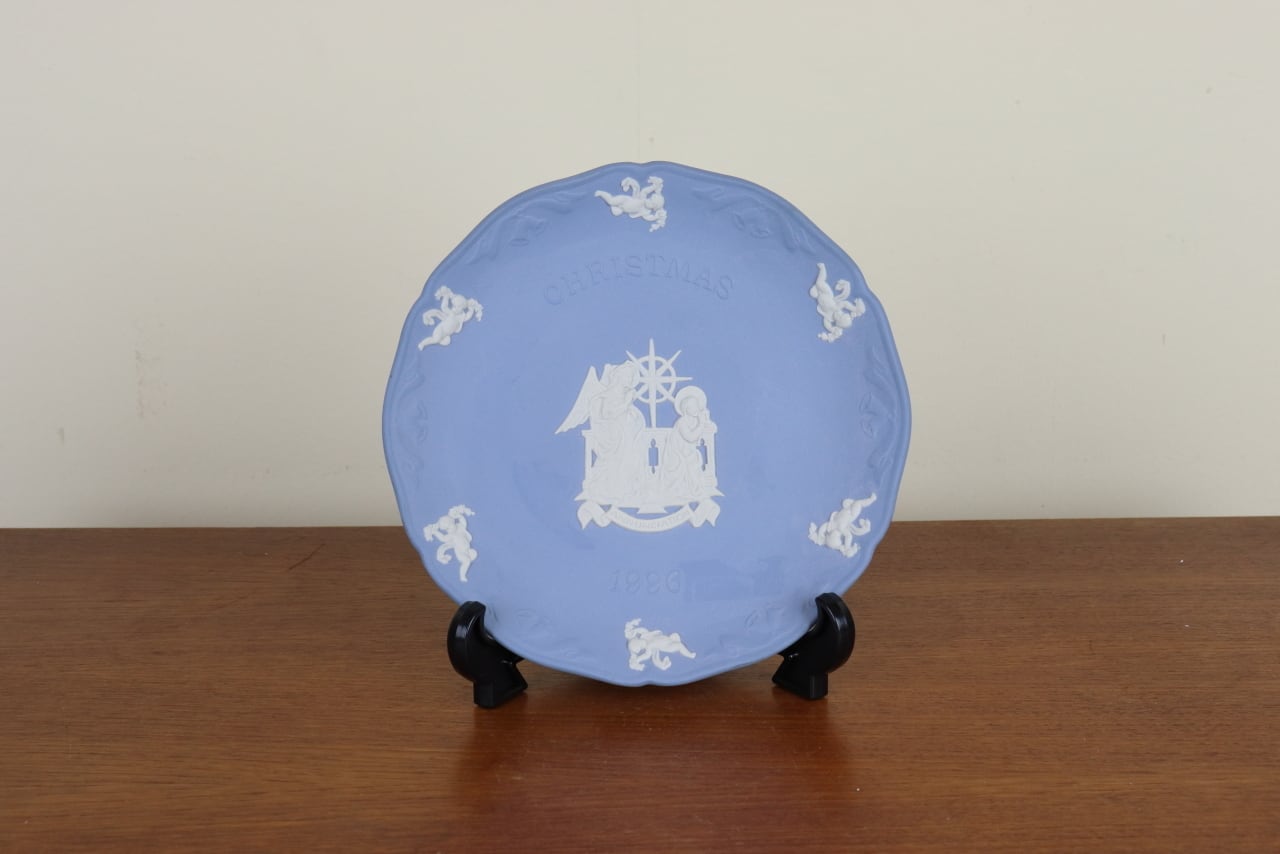 クリスマス ウェッジウッド ジャスパー イヤープレート 1996年 ペールブルー WEDGWOOD イギリス 飾り皿 T245