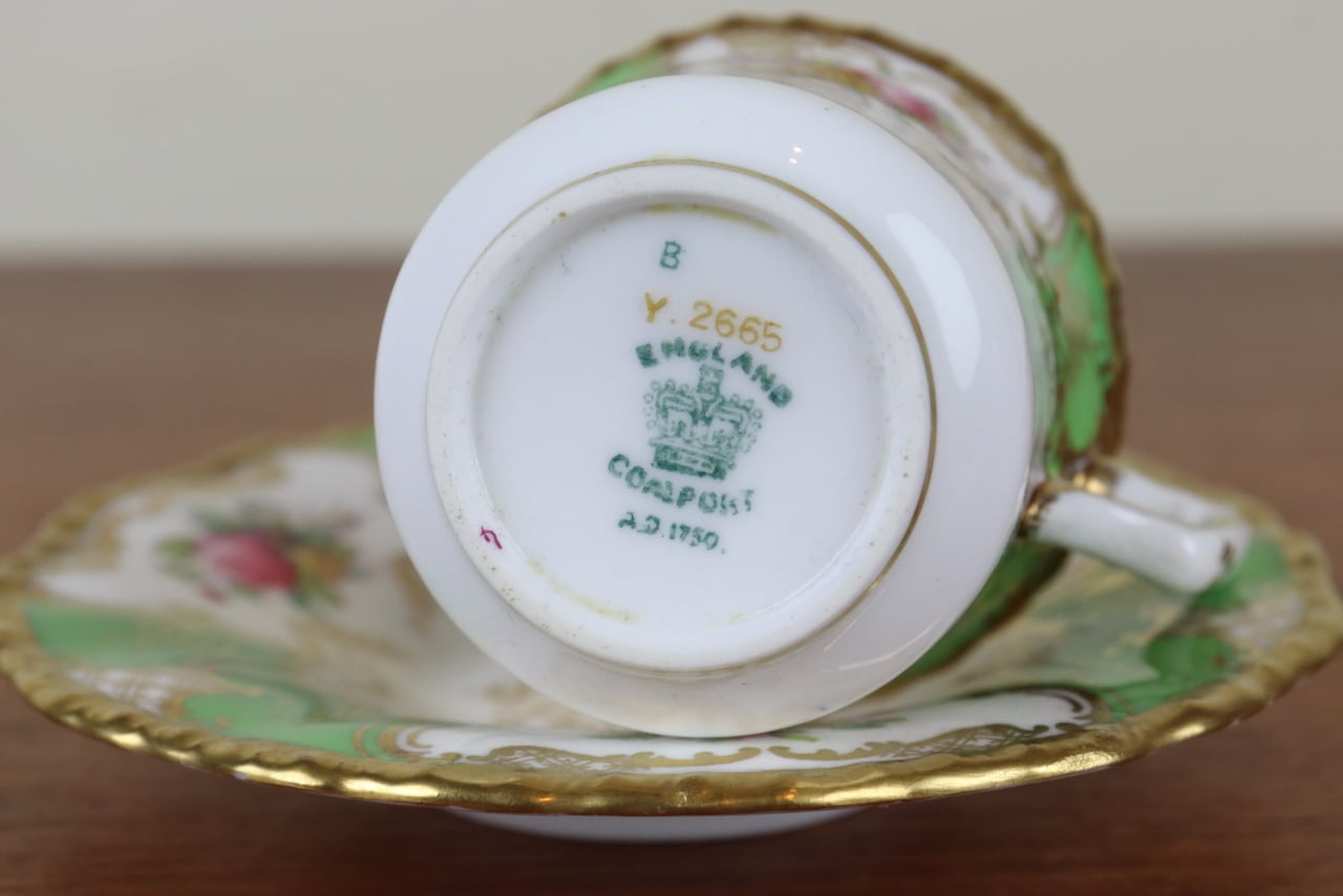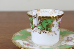 コールポート バットウィング デミタス カップ&ソーサー デュオ Coalport グリーン 緑 イギリス アンティーク G52