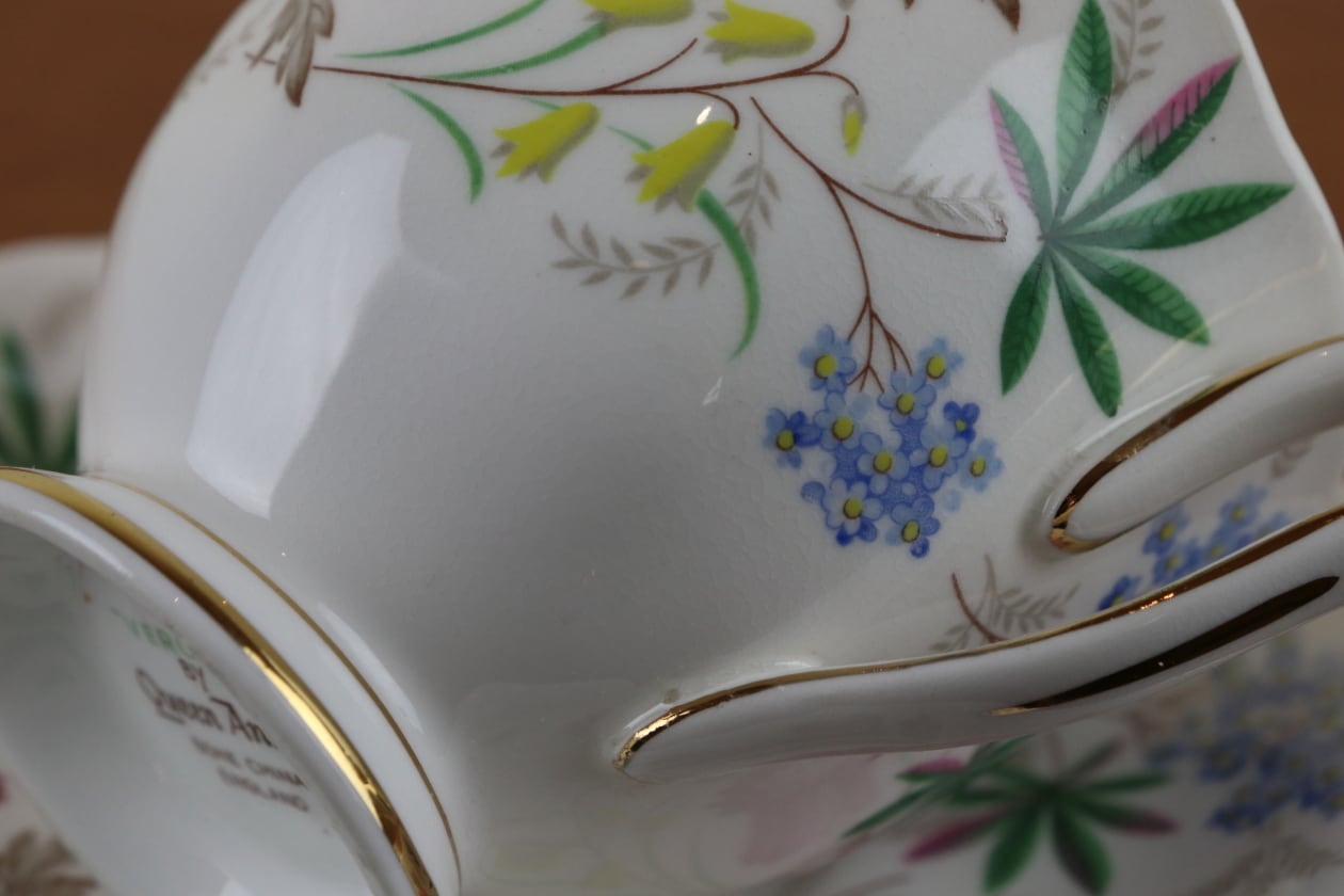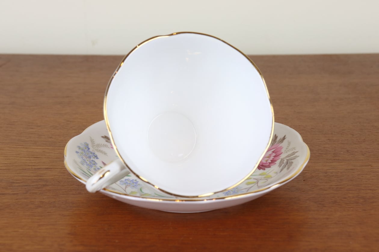 クイーンアン ヴェローナ デュオ ティーカップ 花柄 イギリス ヴィンテージ Queen Anne 食器 つ405