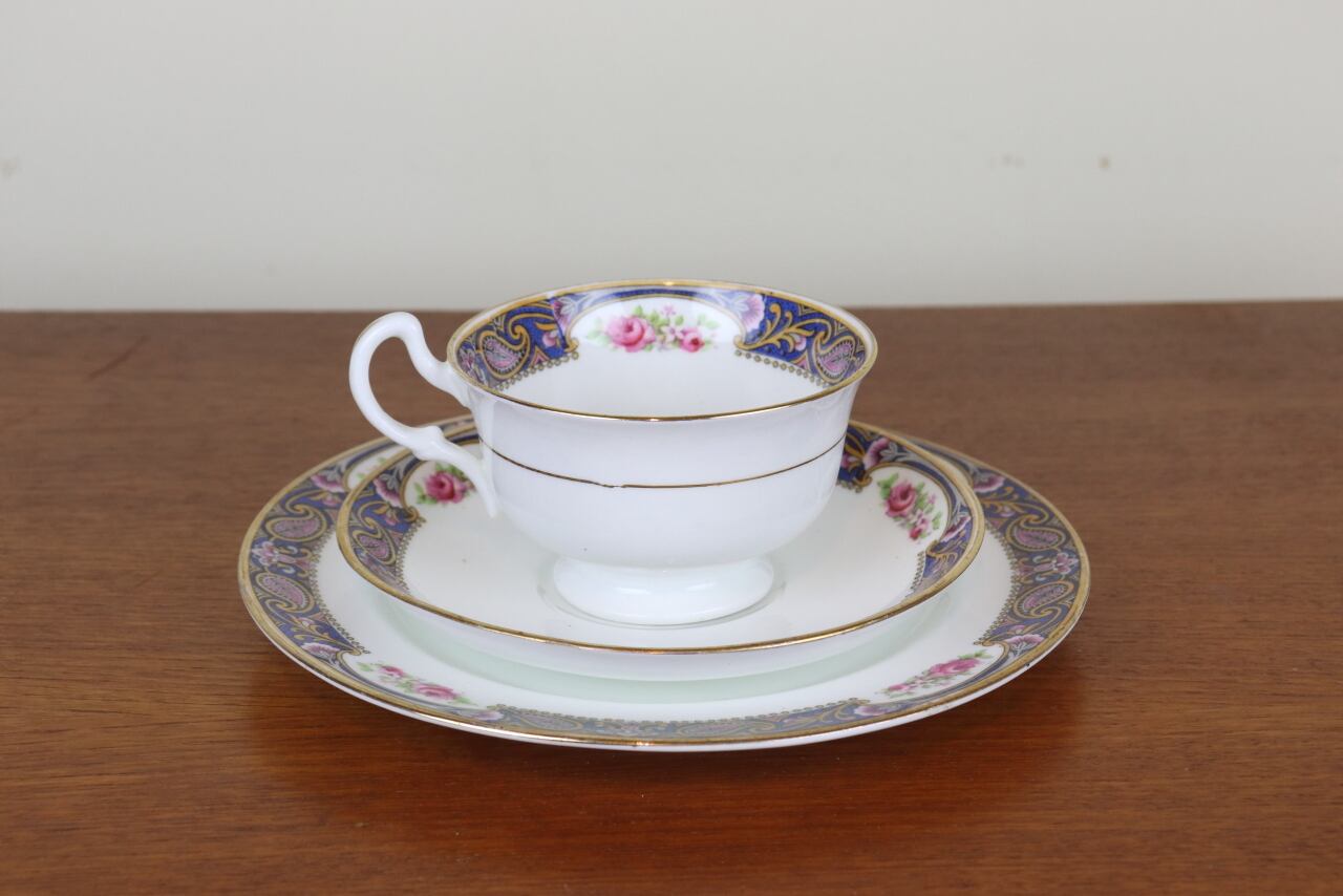 エインズレイ トリオ カップ ケーキ皿 プレート ペイズリー柄 青 アンティーク AYNSLEY イギリス つ28