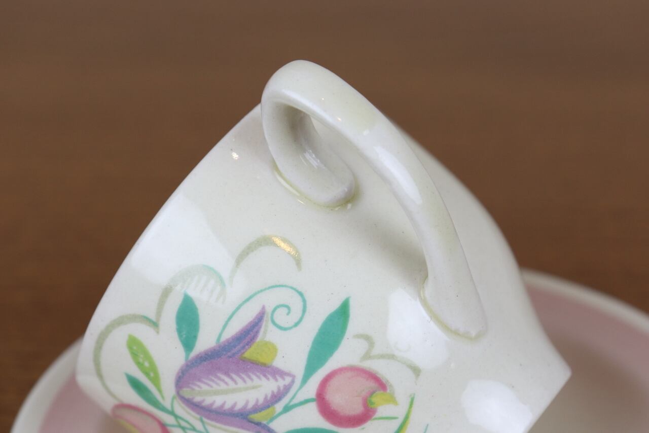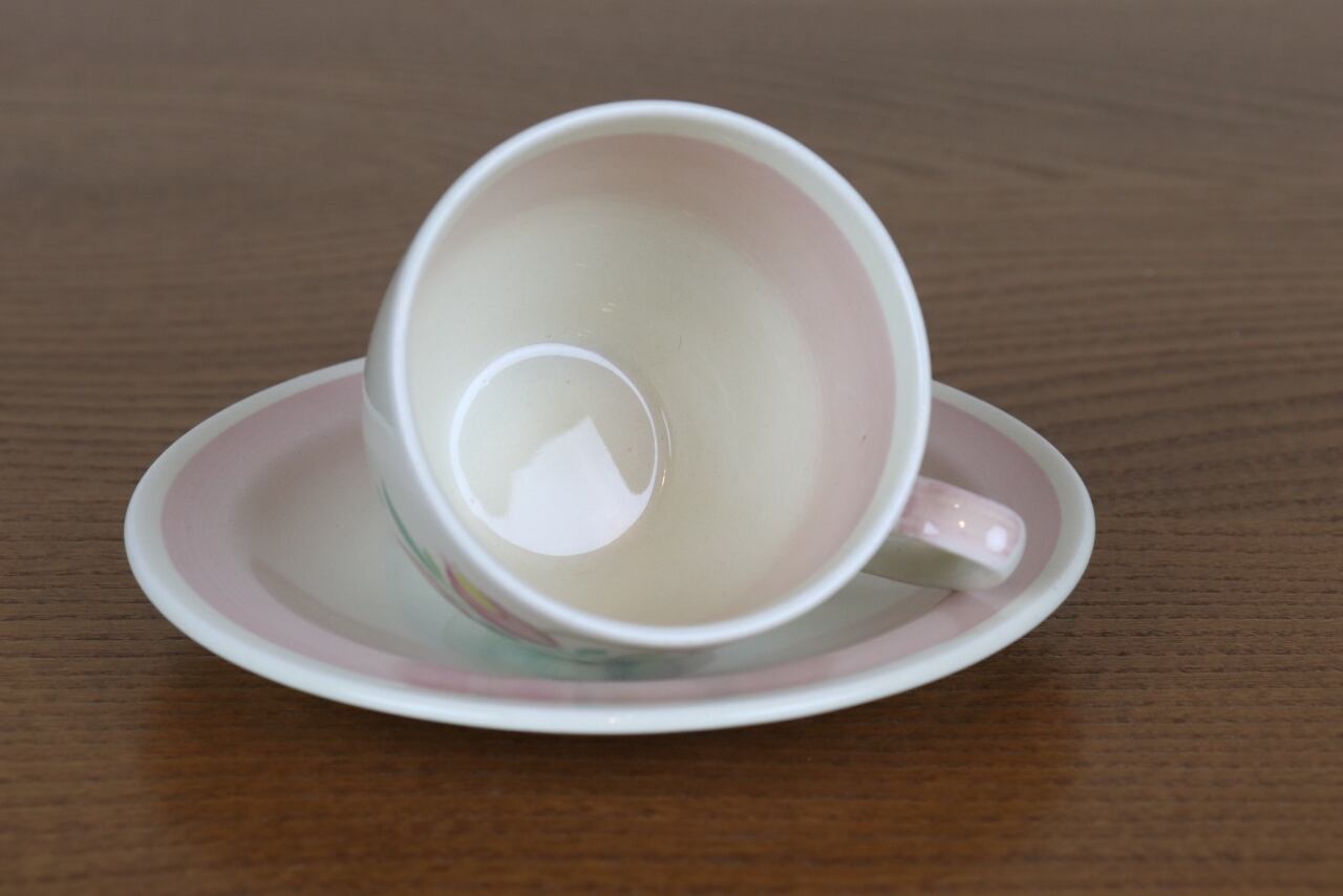 スージークーパー ドレスデンスプレイ デミタス カップ デュオ ピンク Susie Cooper ヴィンテージ イギリス て4