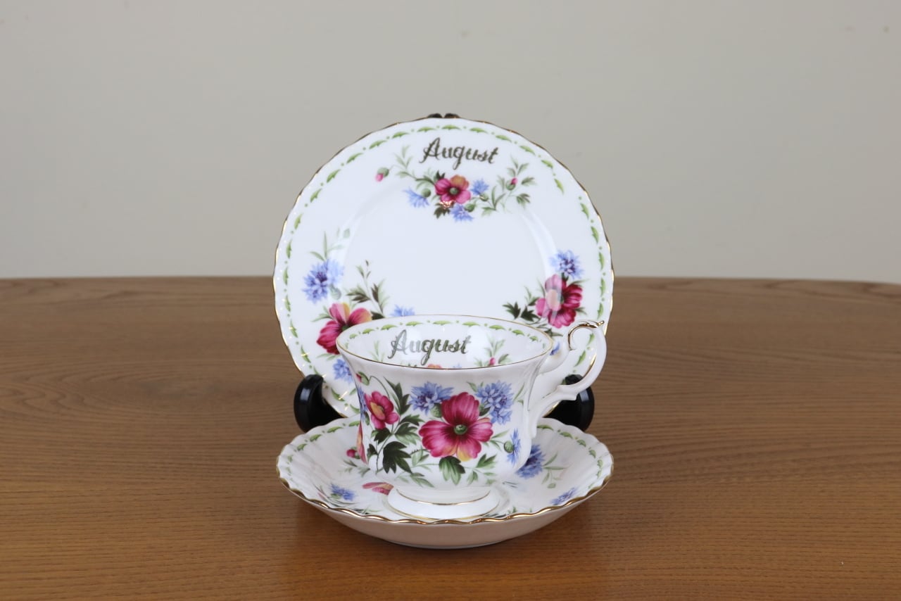 ロイヤルアルバート フラワーオブザマンス トリオ 8月 August ポピー ティーカップ プレート イギリス ROYAL ALBERT ヴィンテージ セカンド品 て48