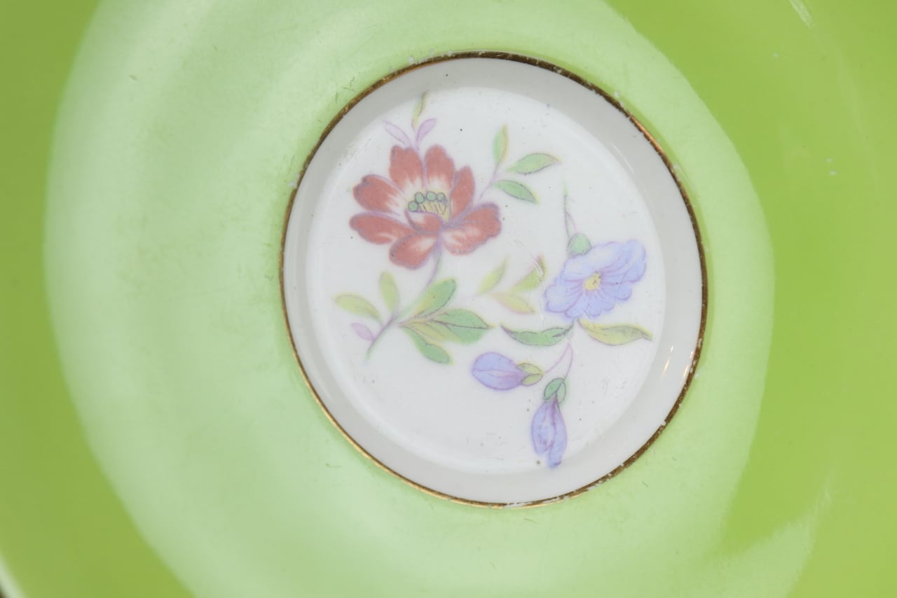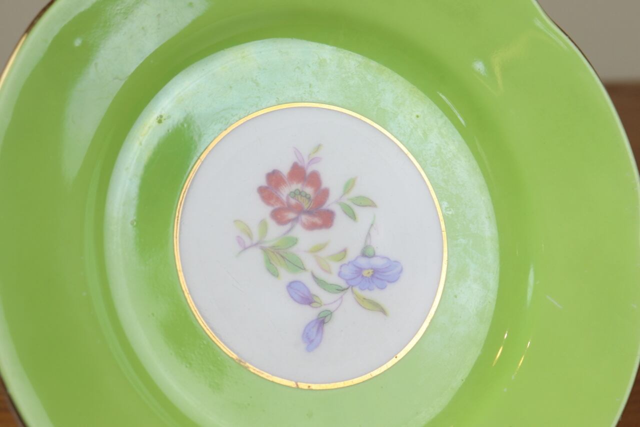 アダレイ トリオ ティーカップ ケーキ皿 プレート 黄緑 Adderley イギリス ヴィンテージ て50