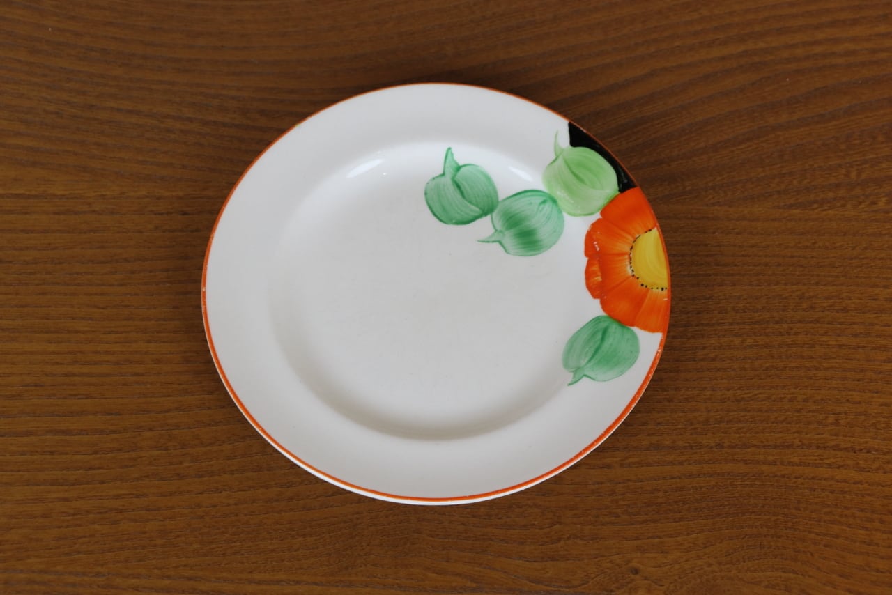 グレイズポタリー プレート16.3cm ケーキ皿 ハンドペイント オレンジ 花柄 GRAY'S POTTERY アンティーク イギリス と53-1