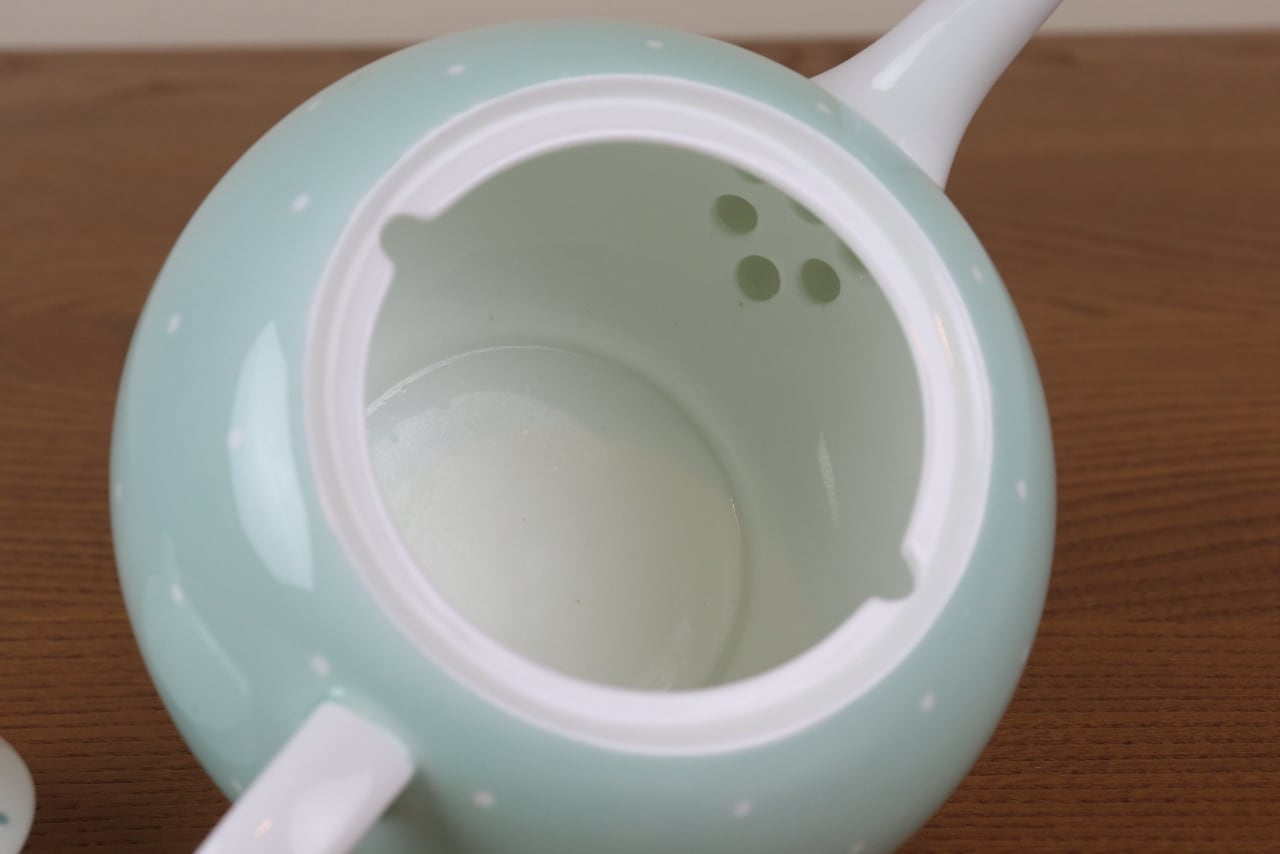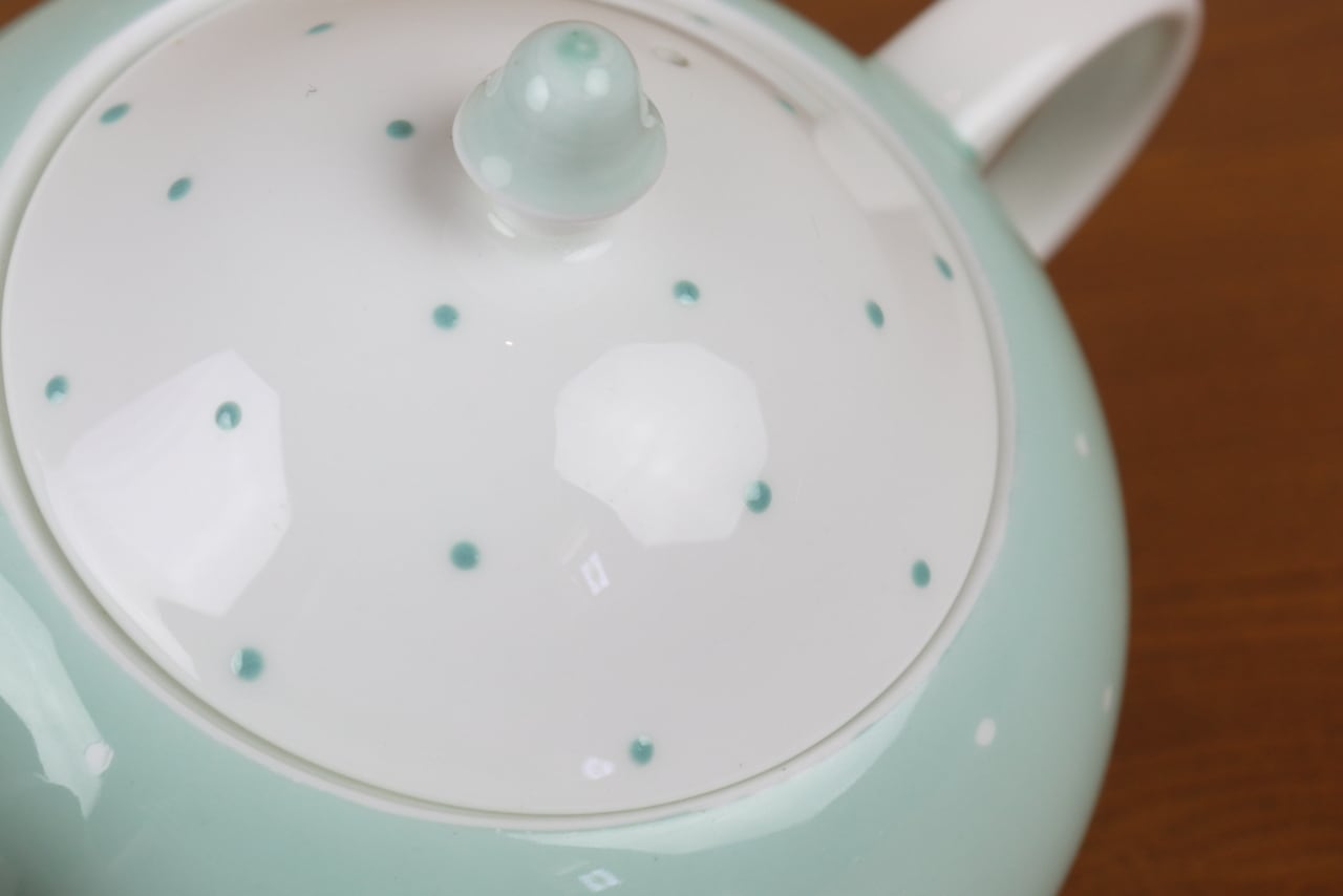 白磁に淡い水色でぷくりと盛り上がったドット柄が爽やかで愛らしいデザインです。