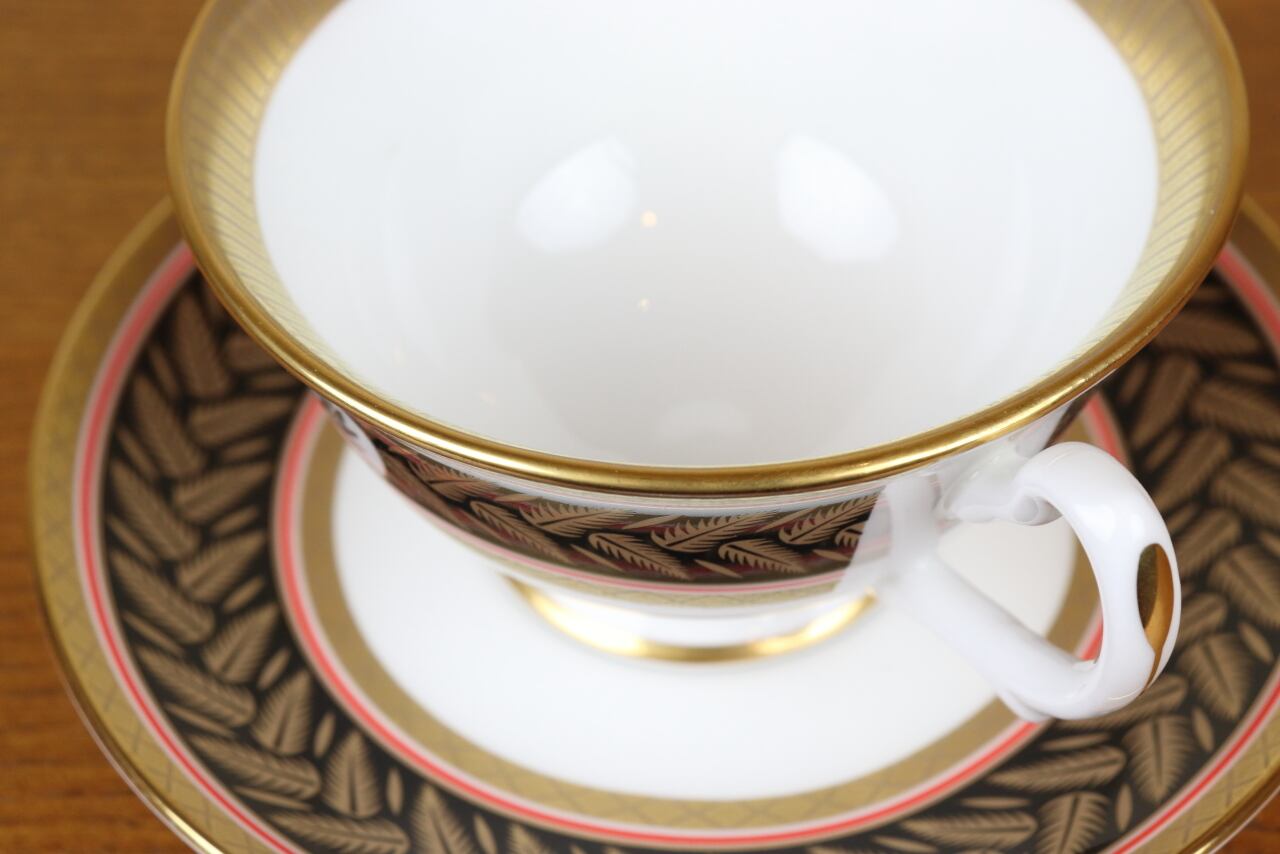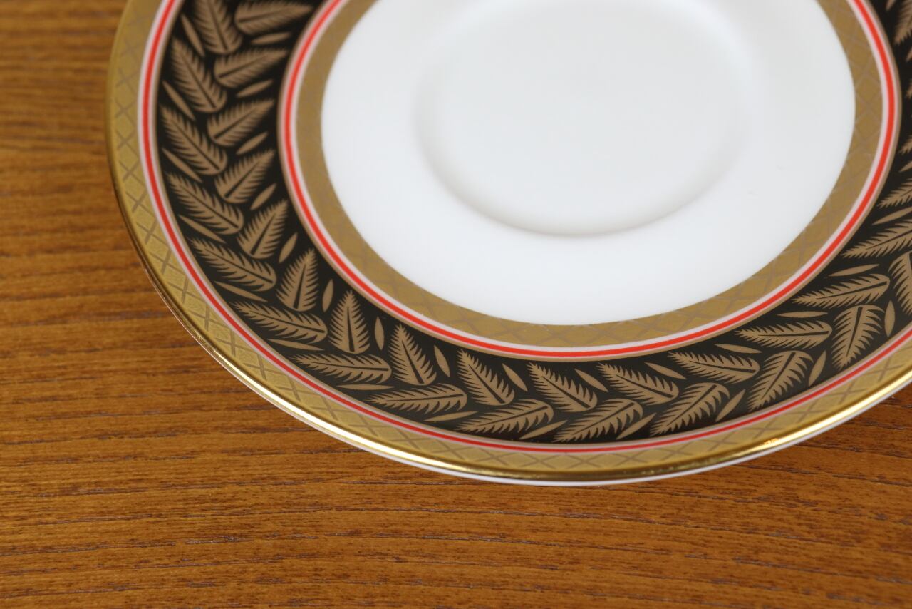 白と黒に赤とゴールドのライン、そして贅沢な金彩模様で飾られたデザインは、