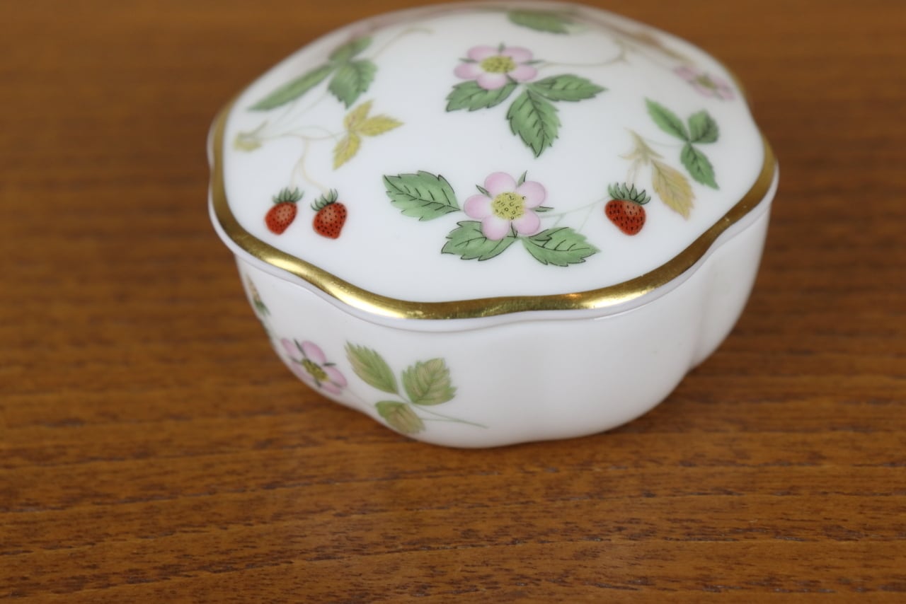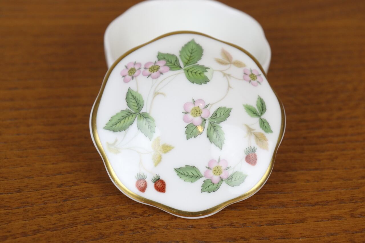 ウェッジウッド ワイルドストロベリー 小物入れ 蓋付き 花型 ケース 苺 WEDGWOOD WILD STRAWBERRY イギリス ヴィンテージ L109