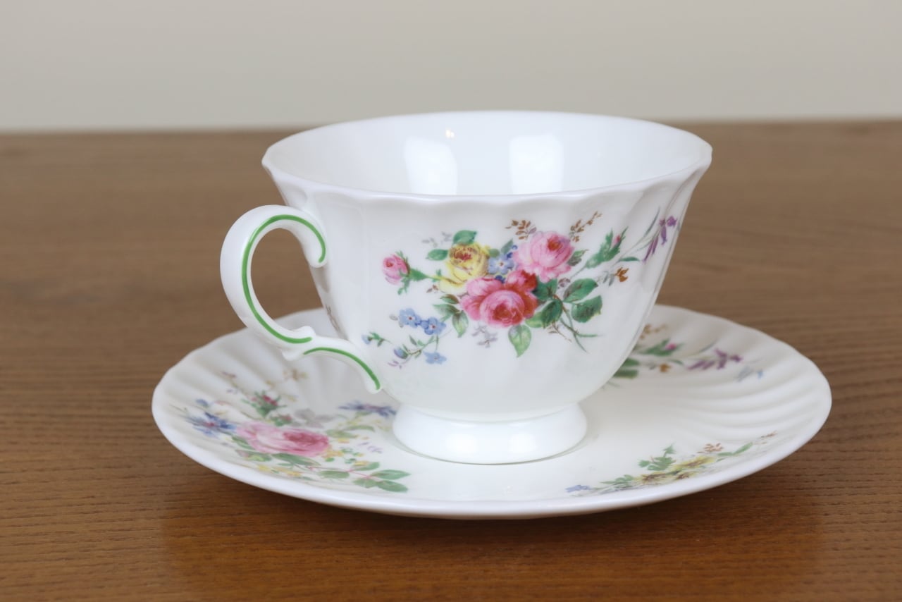 イギリスらしい花々のブーケが繊細に描かれた可愛らしいお品です。