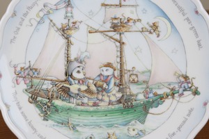 ロイヤルドルトン プレート フクロウと猫 緑のボート 絵皿 飾り皿 イギリス ヴィンテージ A85-3