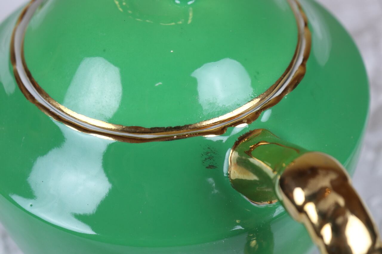 鮮やかなグリーンと金彩のコントラストが目を惹く、高級感のあるお品です。
