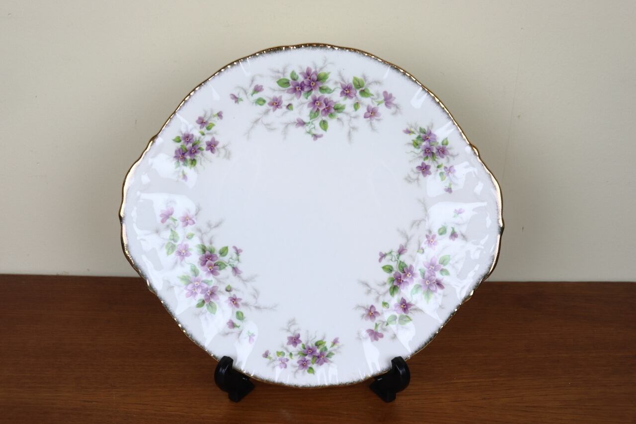 ラベンダー色の小花が描かれた、清楚で優しい印象のプレートです。