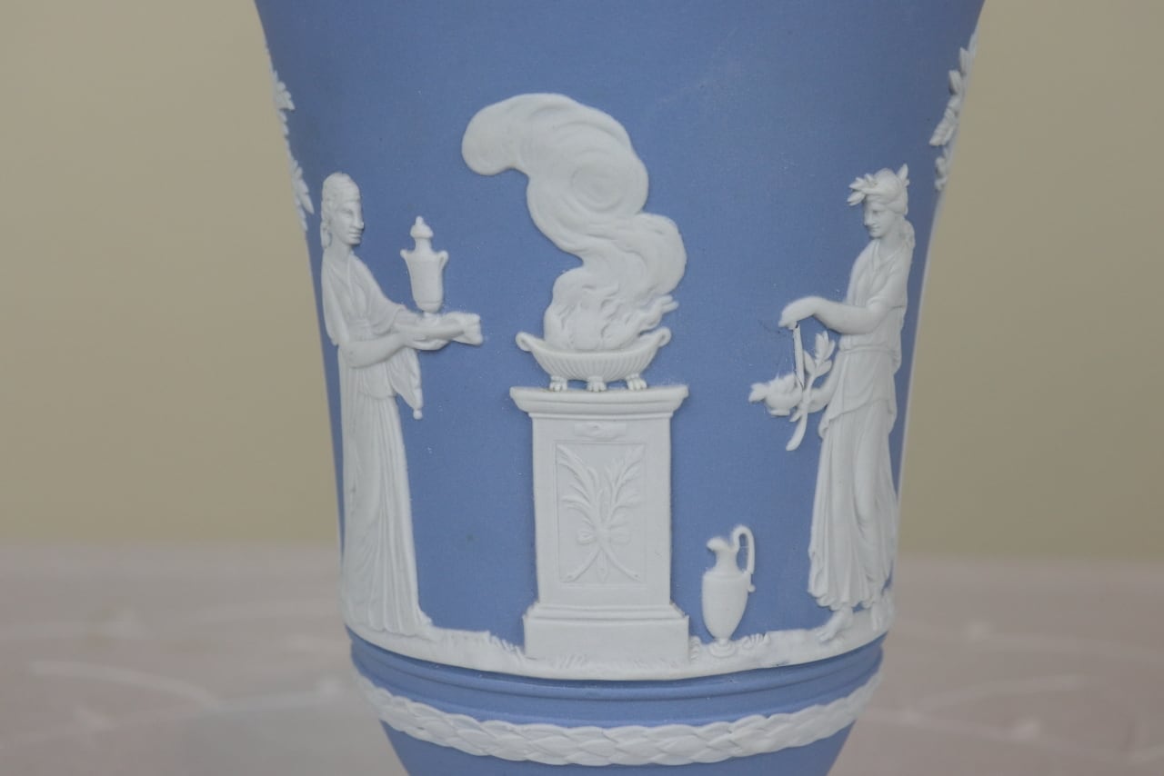 ウェッジウッド ジャスパー 花瓶 ペールブルー フラワーベース WEDGWOOD イギリス ヴィンテージ た207