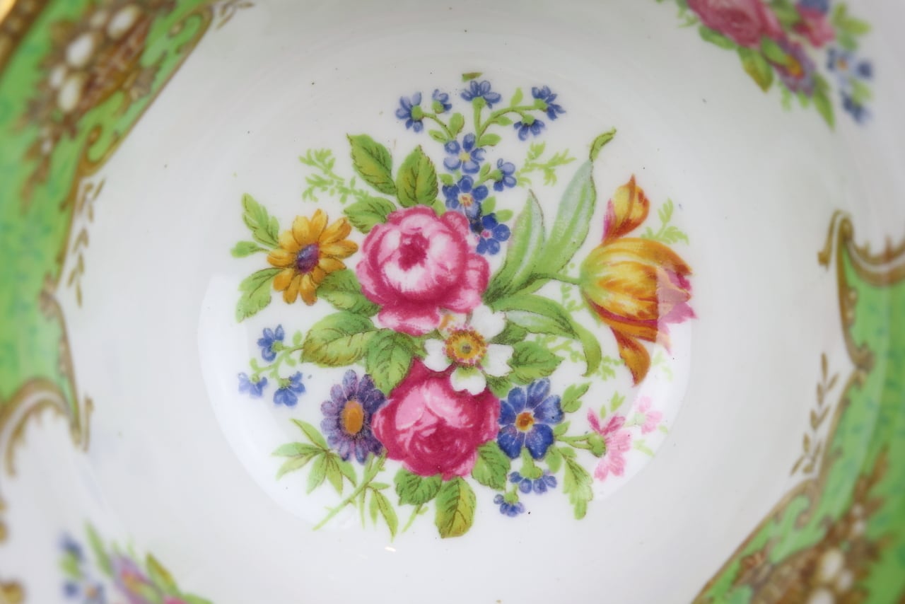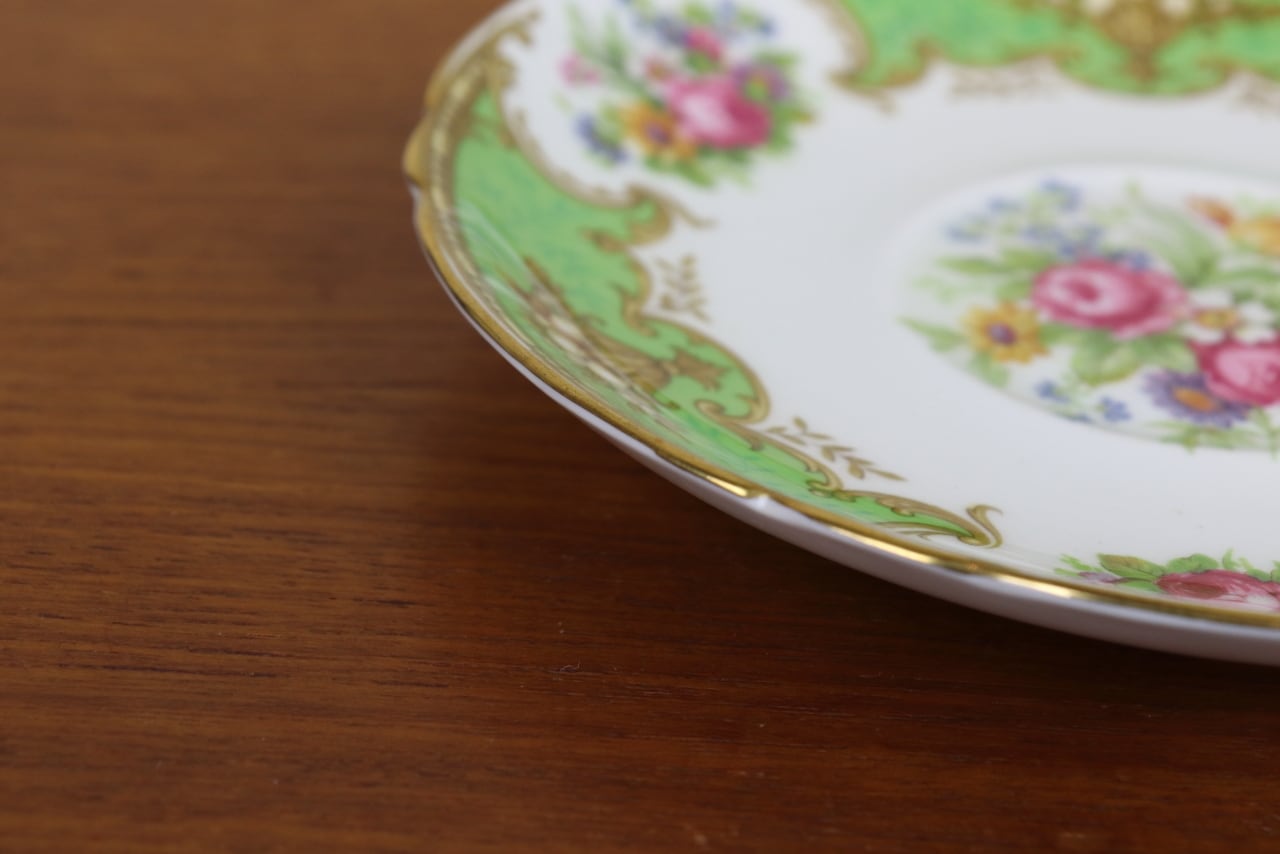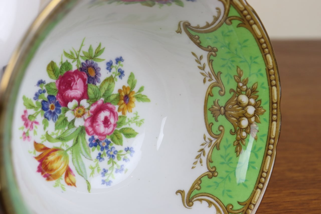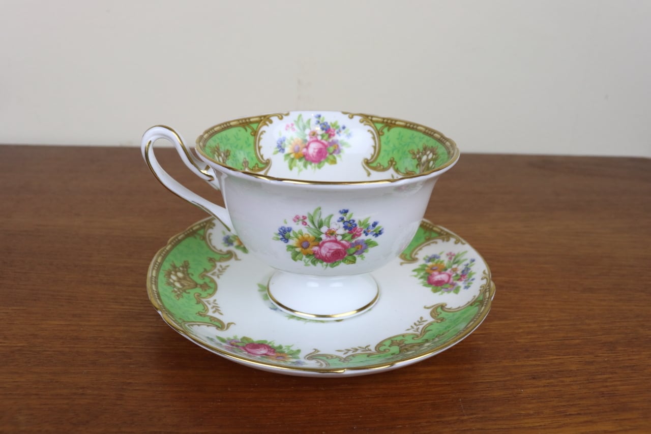 シェリー Shelley ダッチェス Duchess デュオ カップ&ソーサー ティーカップ ゲインズシェイプ 花柄 グリーン 緑 イギリス せ15