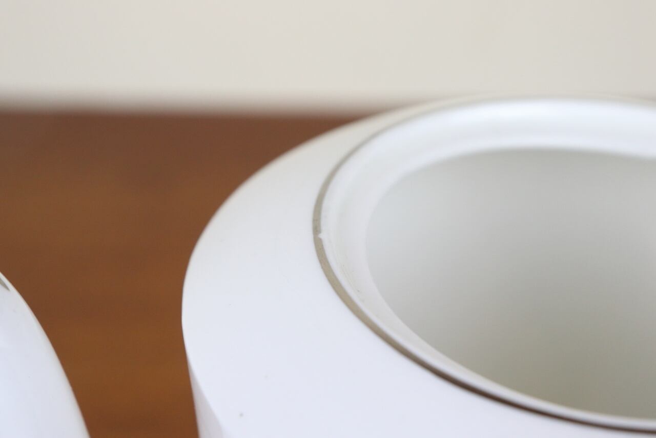 ポットの口と、中の穴が開いている部分にヒビがございます。(写真10.11.12.13枚目)